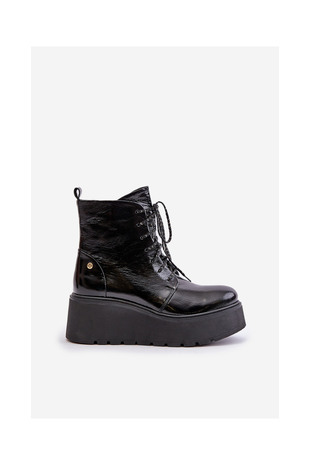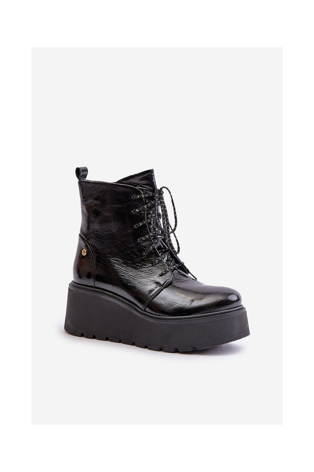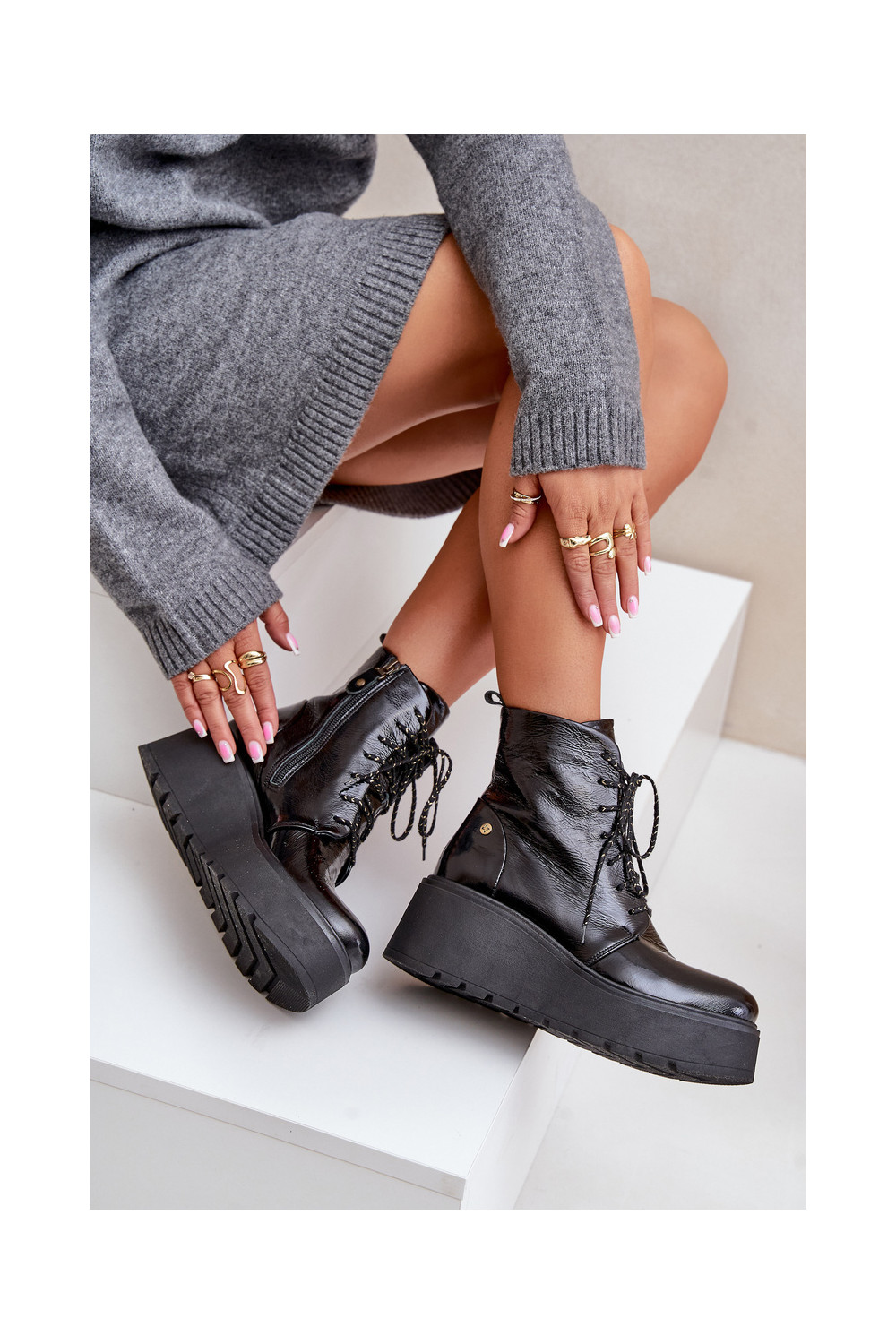 Ādas zābaki ar lakota efekta platformu melnā krāsā Tai turiciejka 06762-01