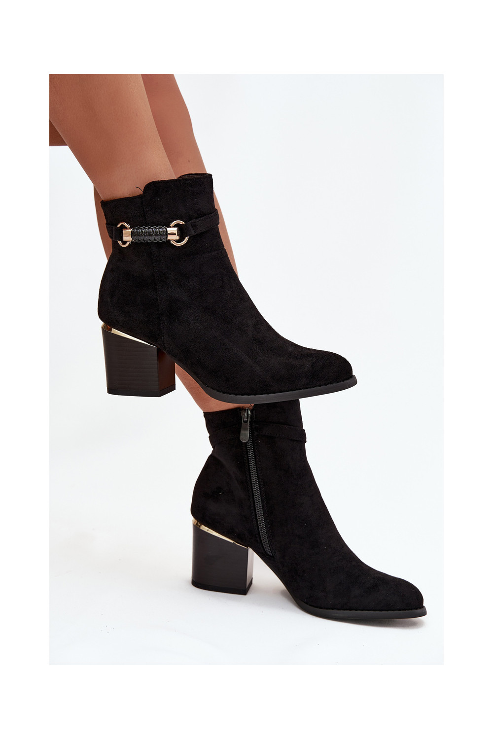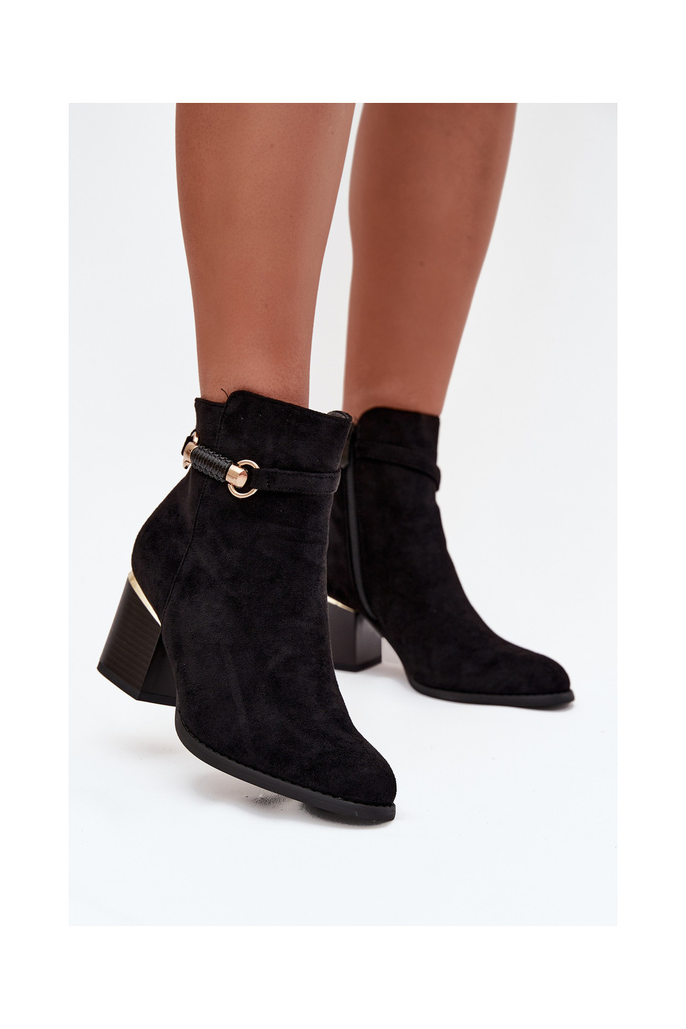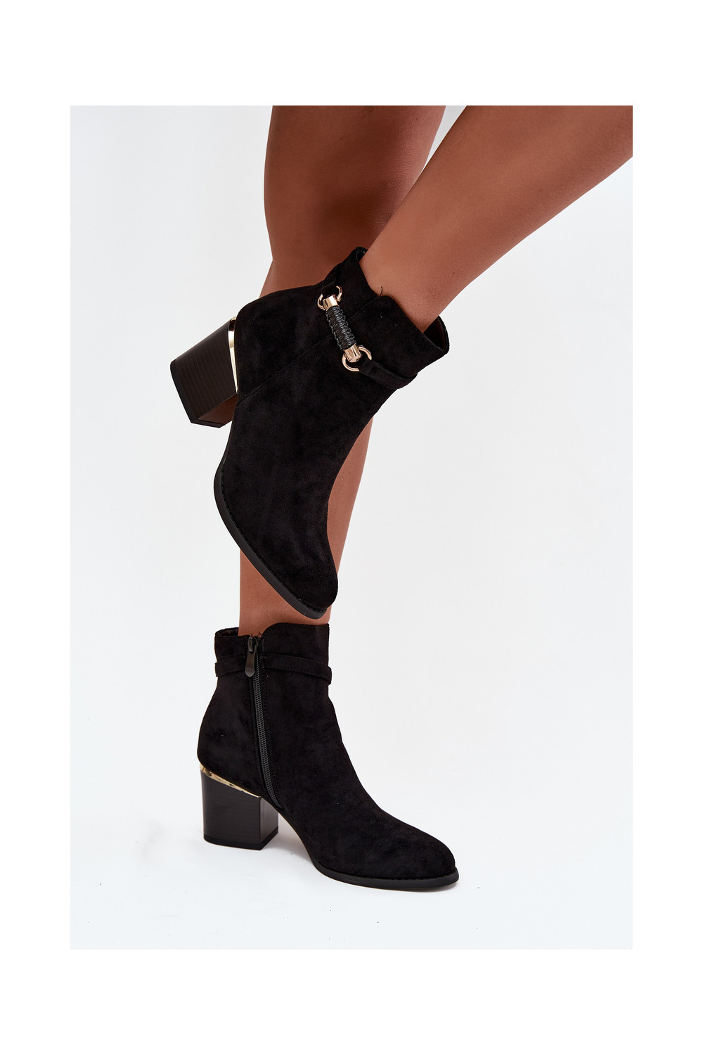 Sieviešu puszābaki siltināti ar papēdi ar dekorētiem papēžiem melnas krāsas Galissa