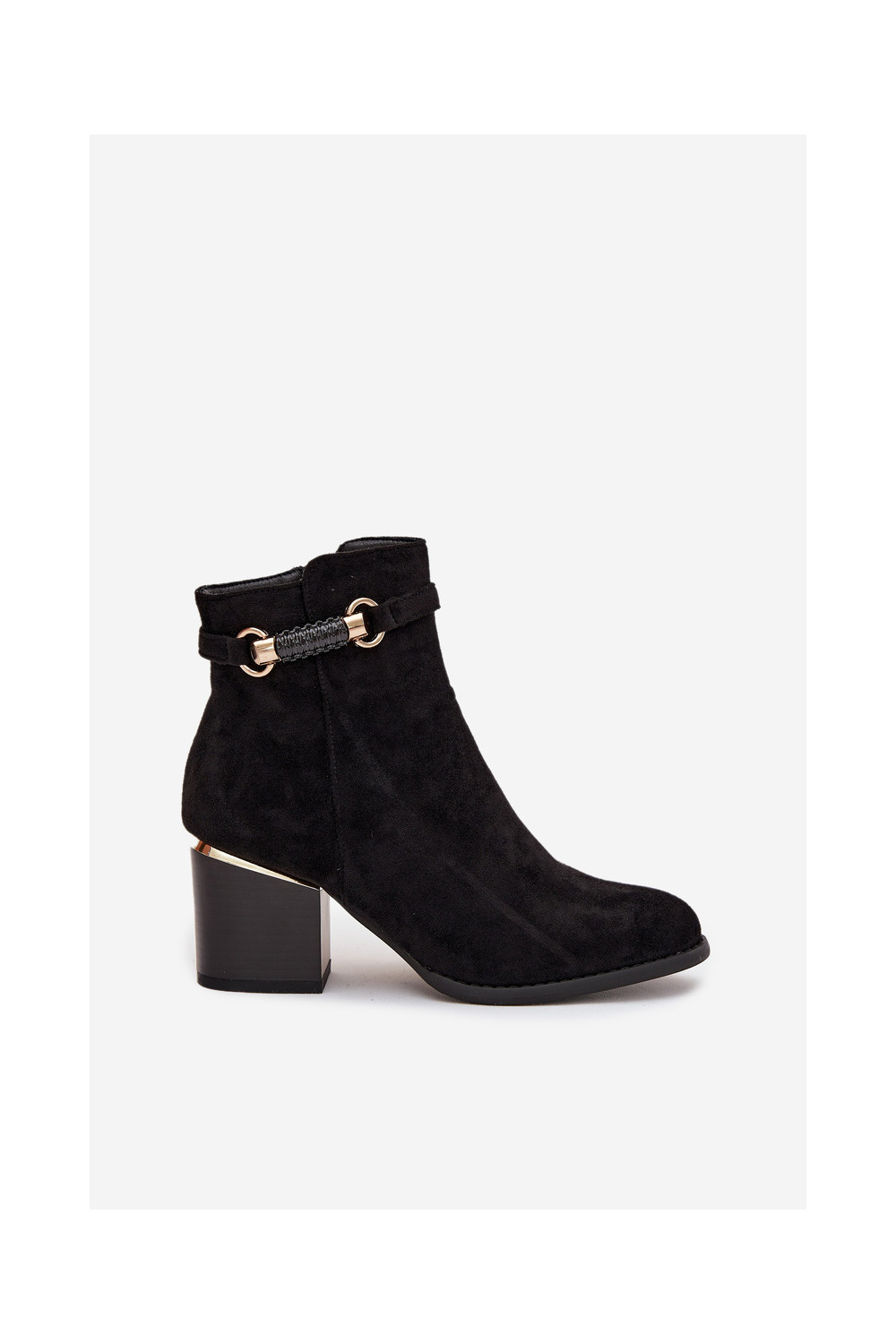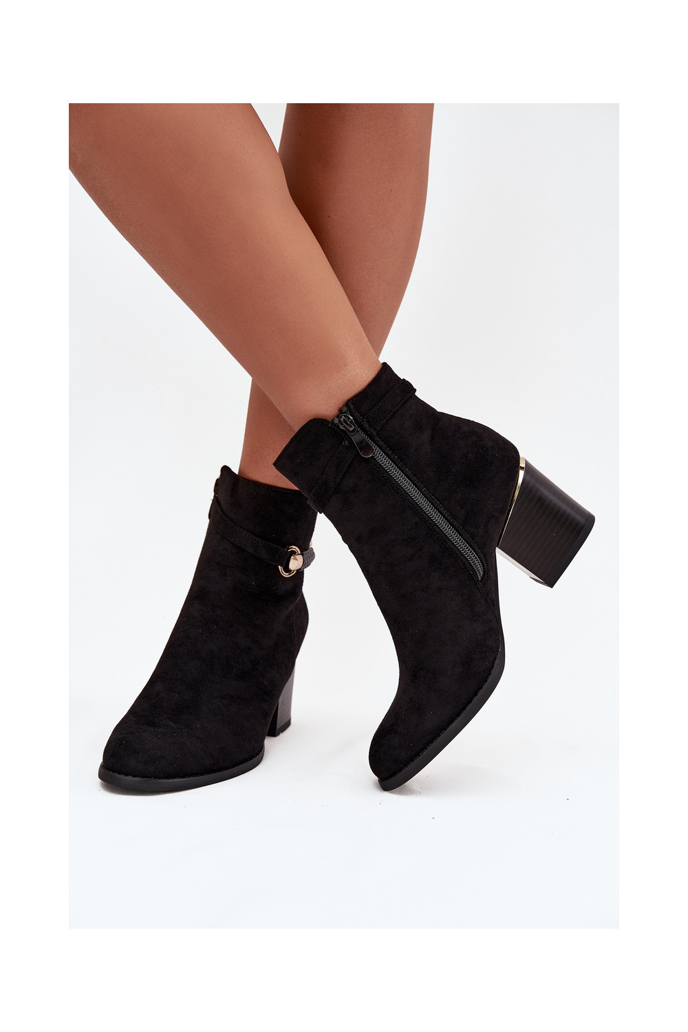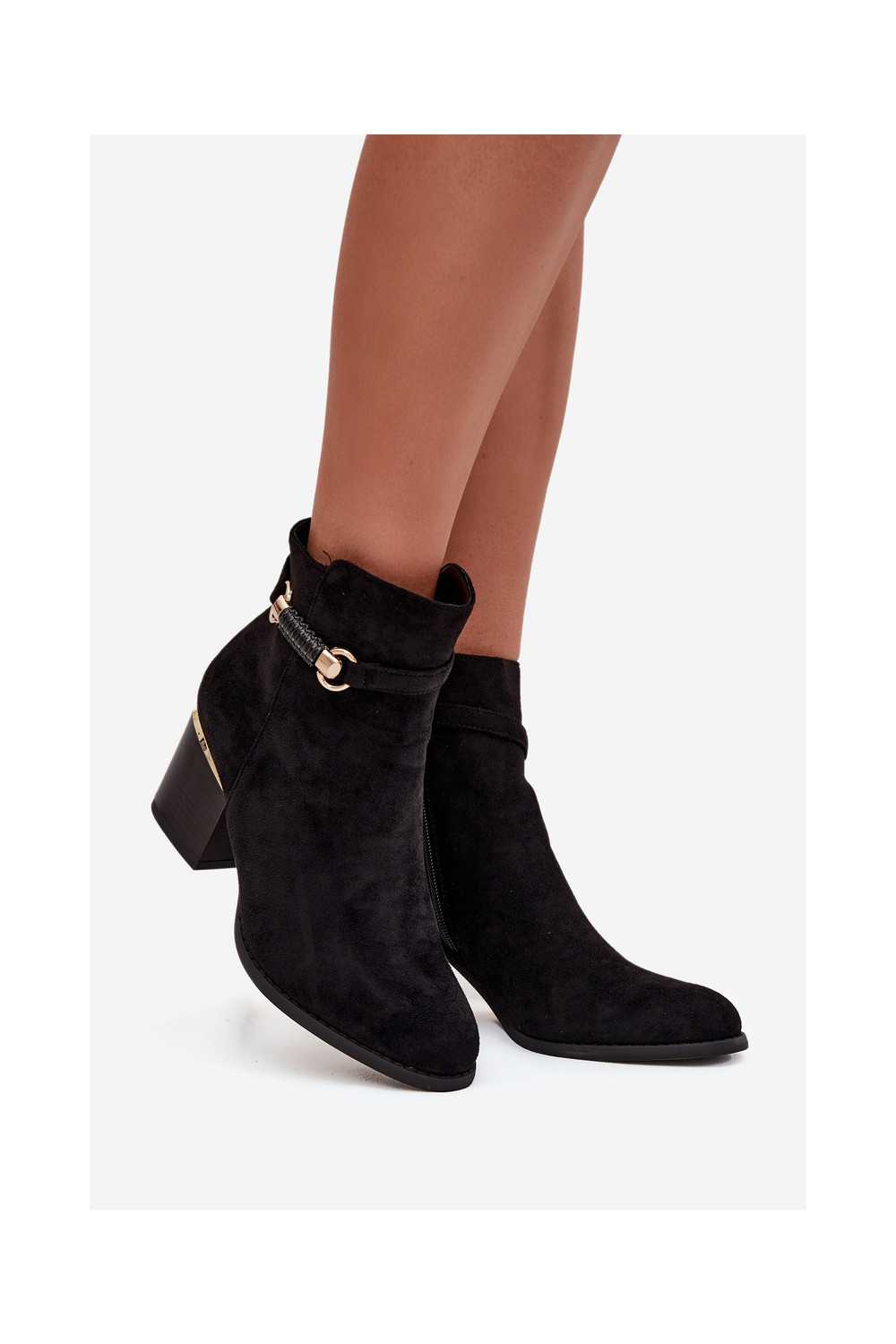 Sieviešu puszābaki siltināti ar papēdi ar dekorētiem papēžiem melnas krāsas Galissa