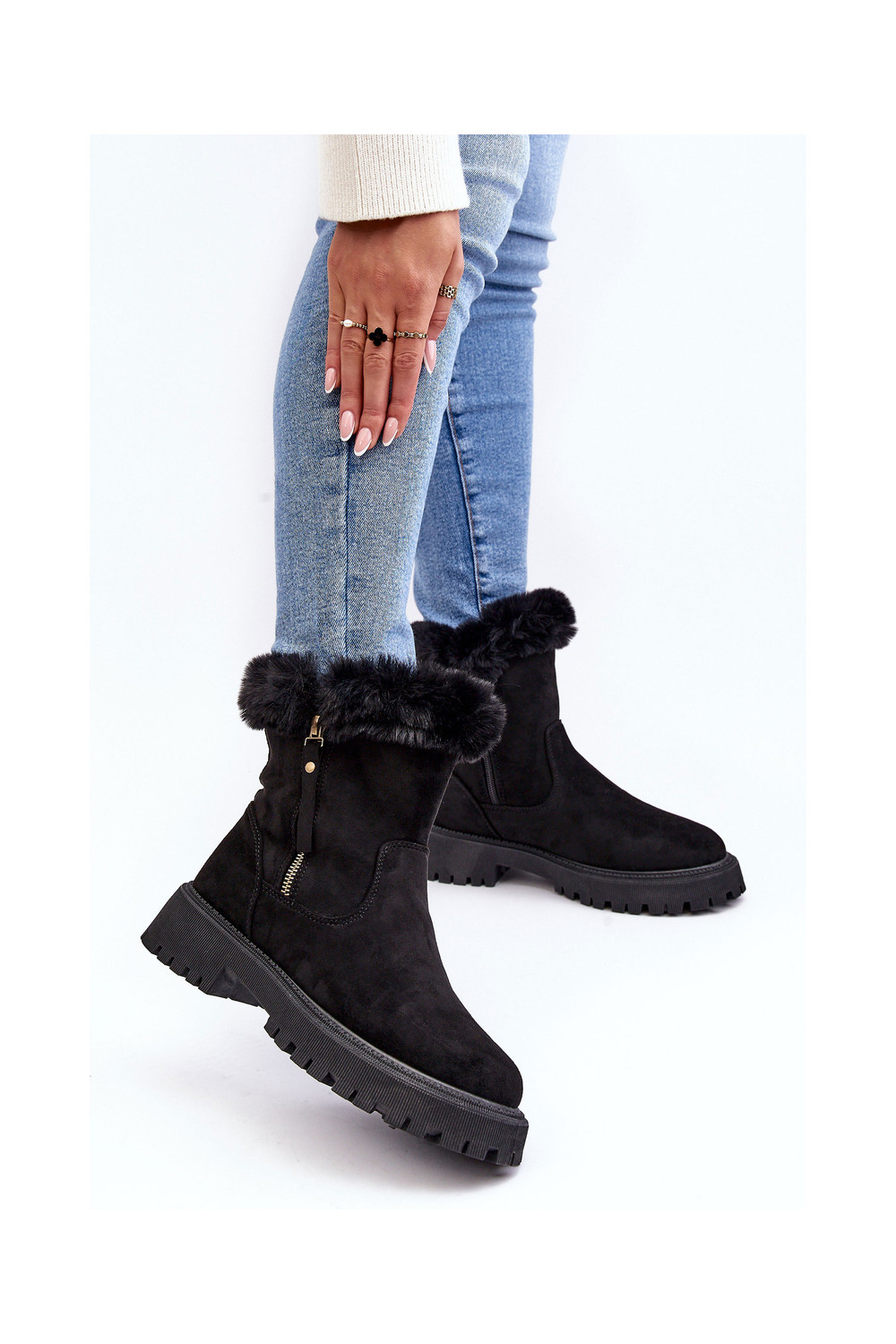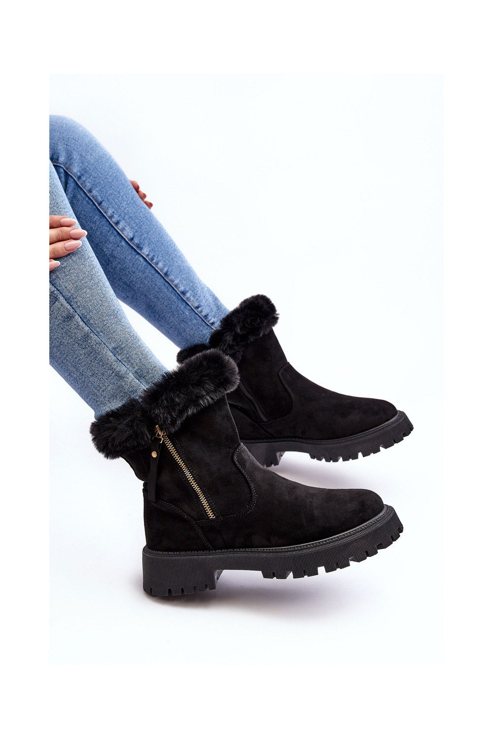 Sieviešu puszābaki zamšādas Sieviešu ar kažokādu melnas krāsas Hasiva