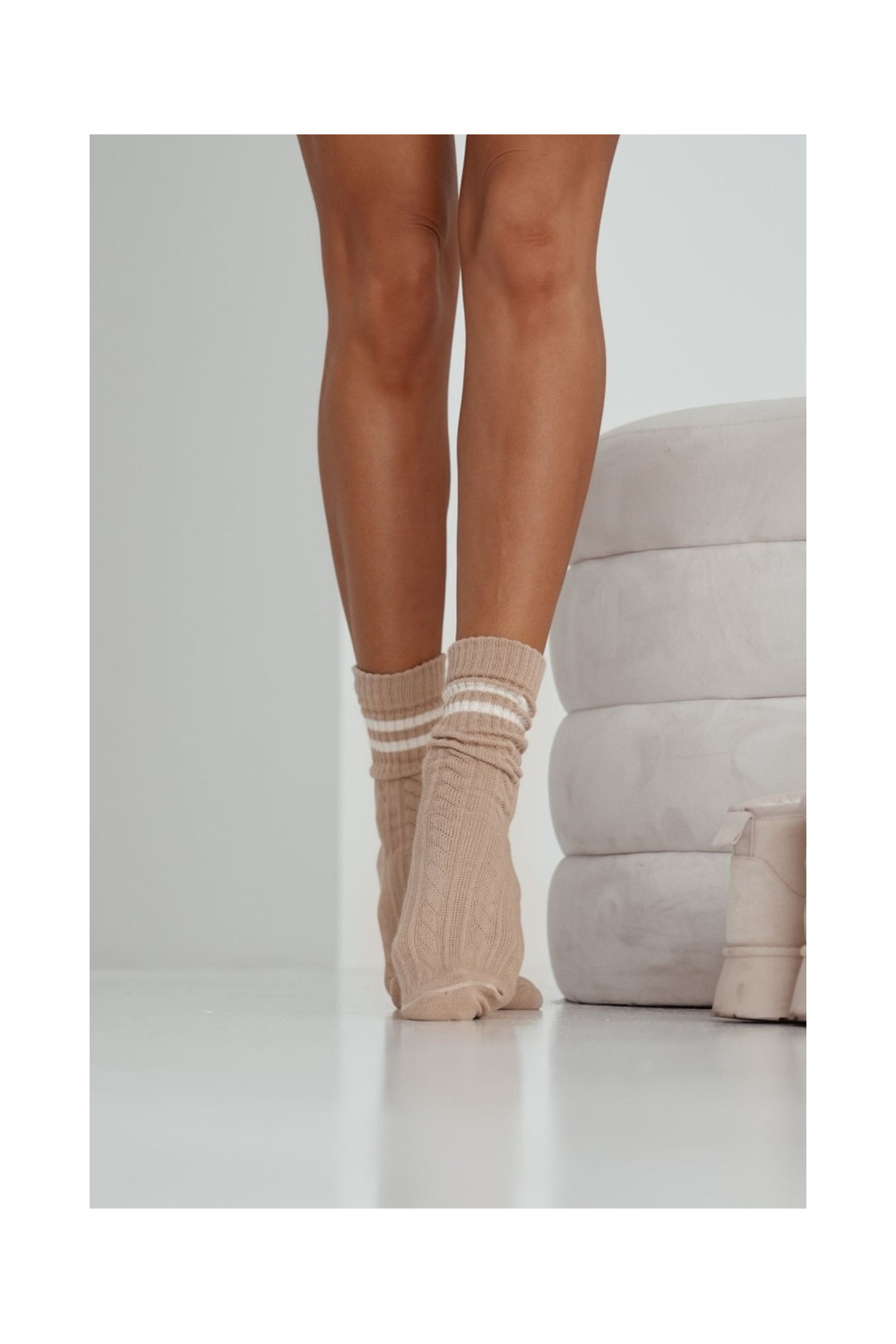 Smilšu krāsas sieviešu zeķes ar pinumiem un joslām