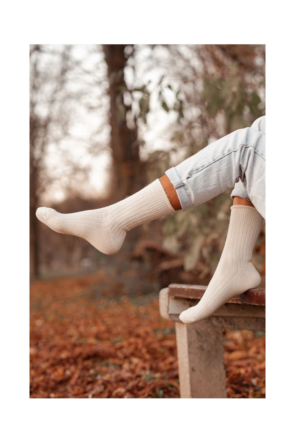 Ziloņkaula krāsas sieviešu kokvilnas zeķes