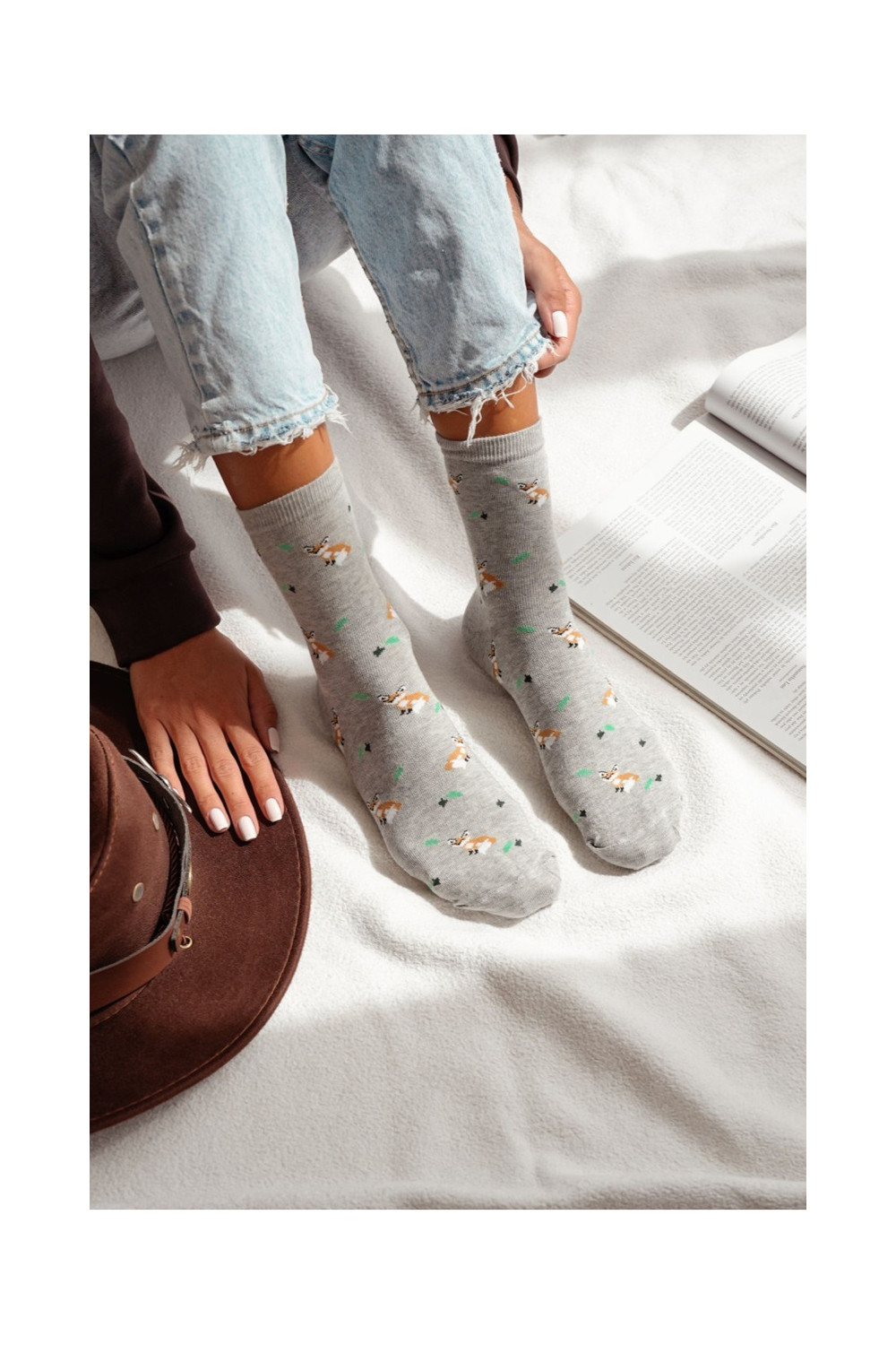 IN sieviešu zeķes lapsas un lapas pelēkā melanžā