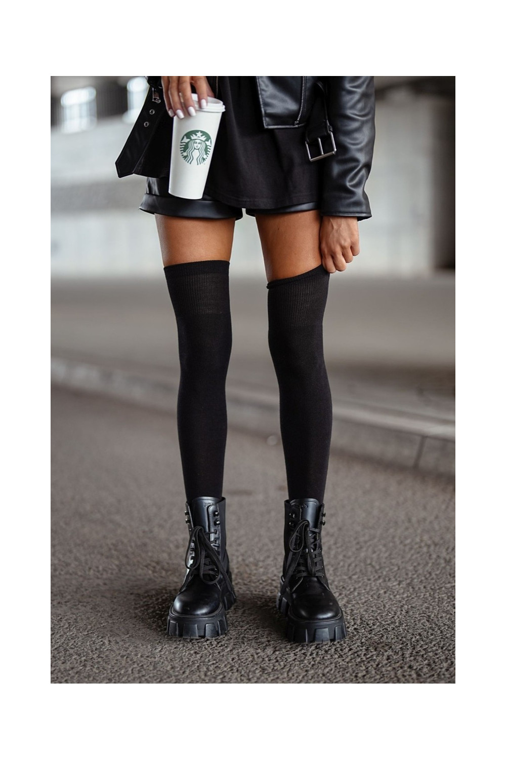 Sieviešu garās zeķes kokvilnas gludas melnā krāsā