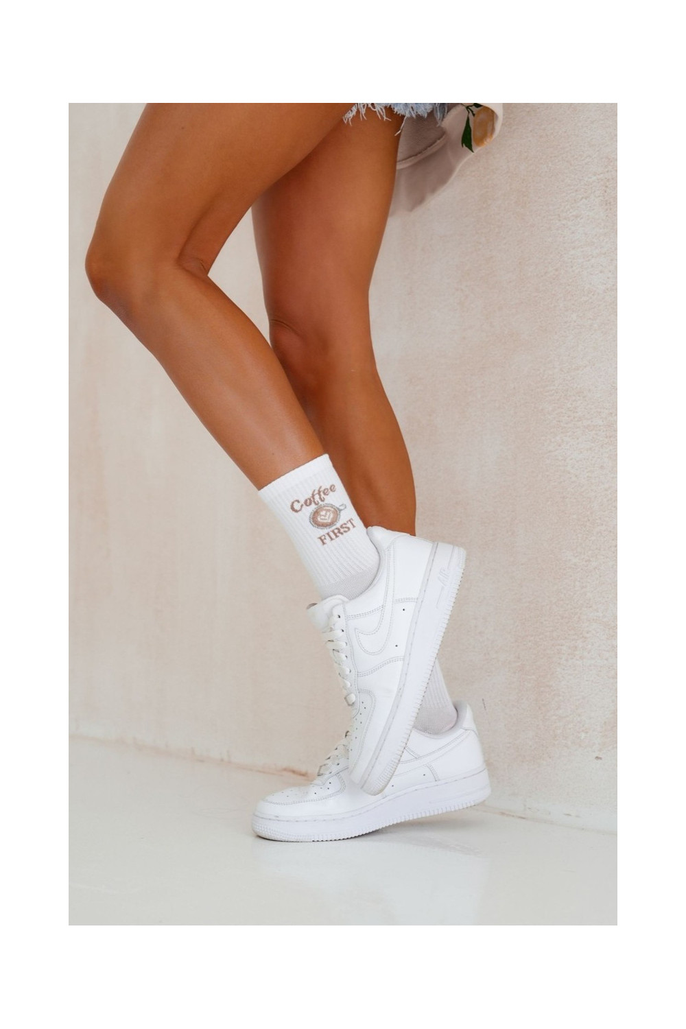 Māmišķīgas baltas zeķes „Kafija VISPIRMS"