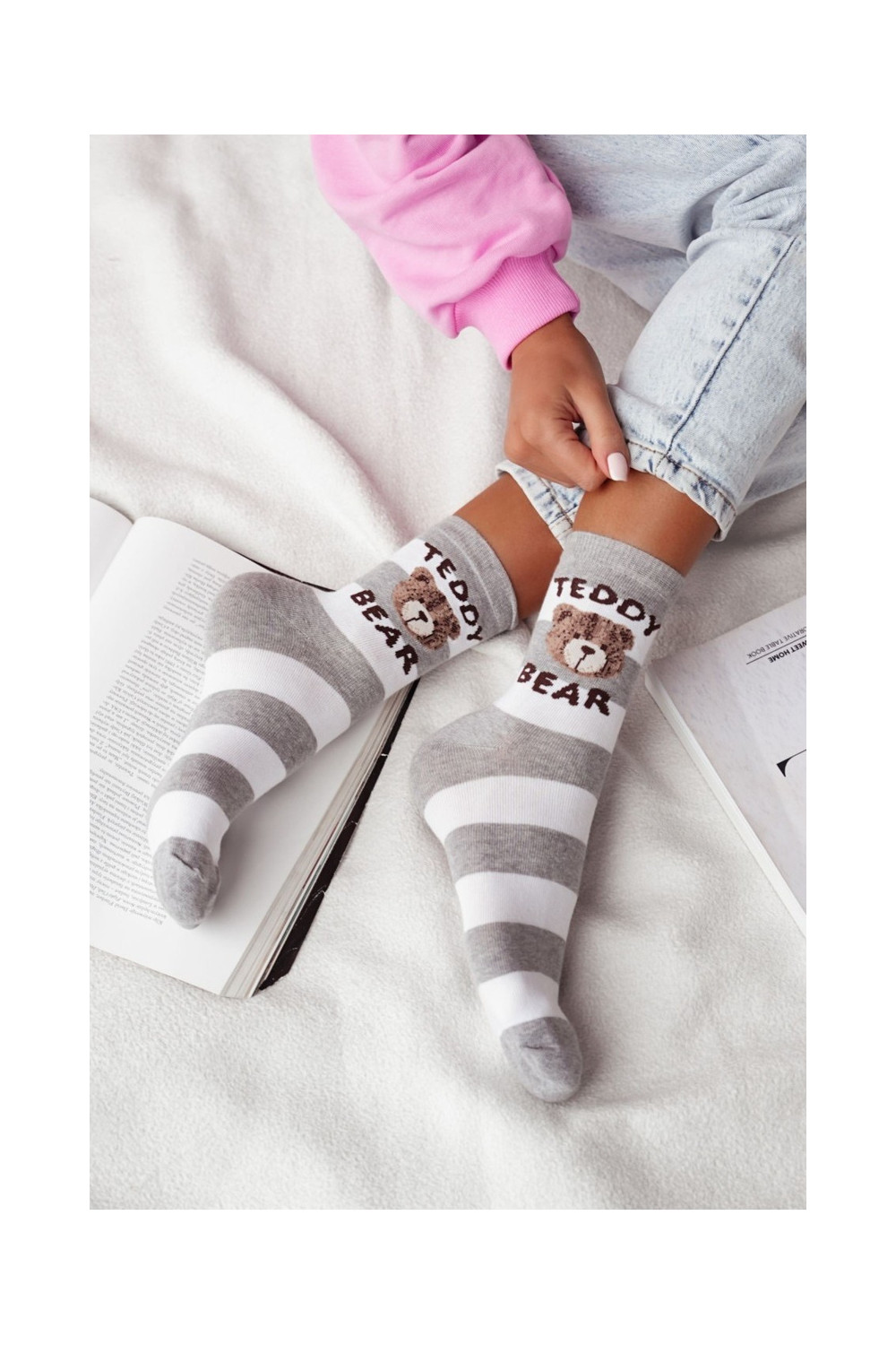 Zeķes ar svītrām Teddy Bear Pelēkas krāsas
