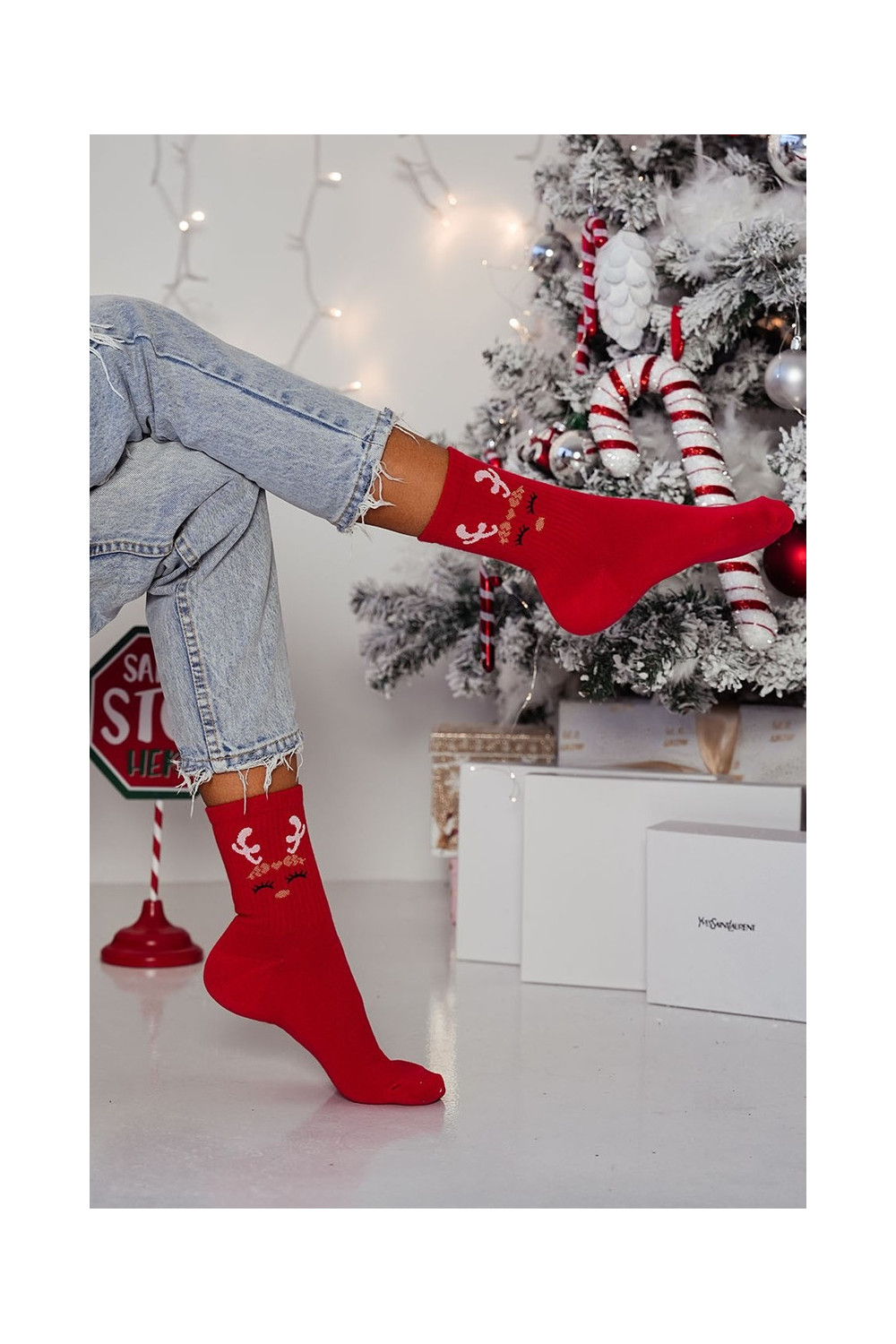 Zeķes Sieviešu Christmas Ziemeļbrieži sarkanas krāsas