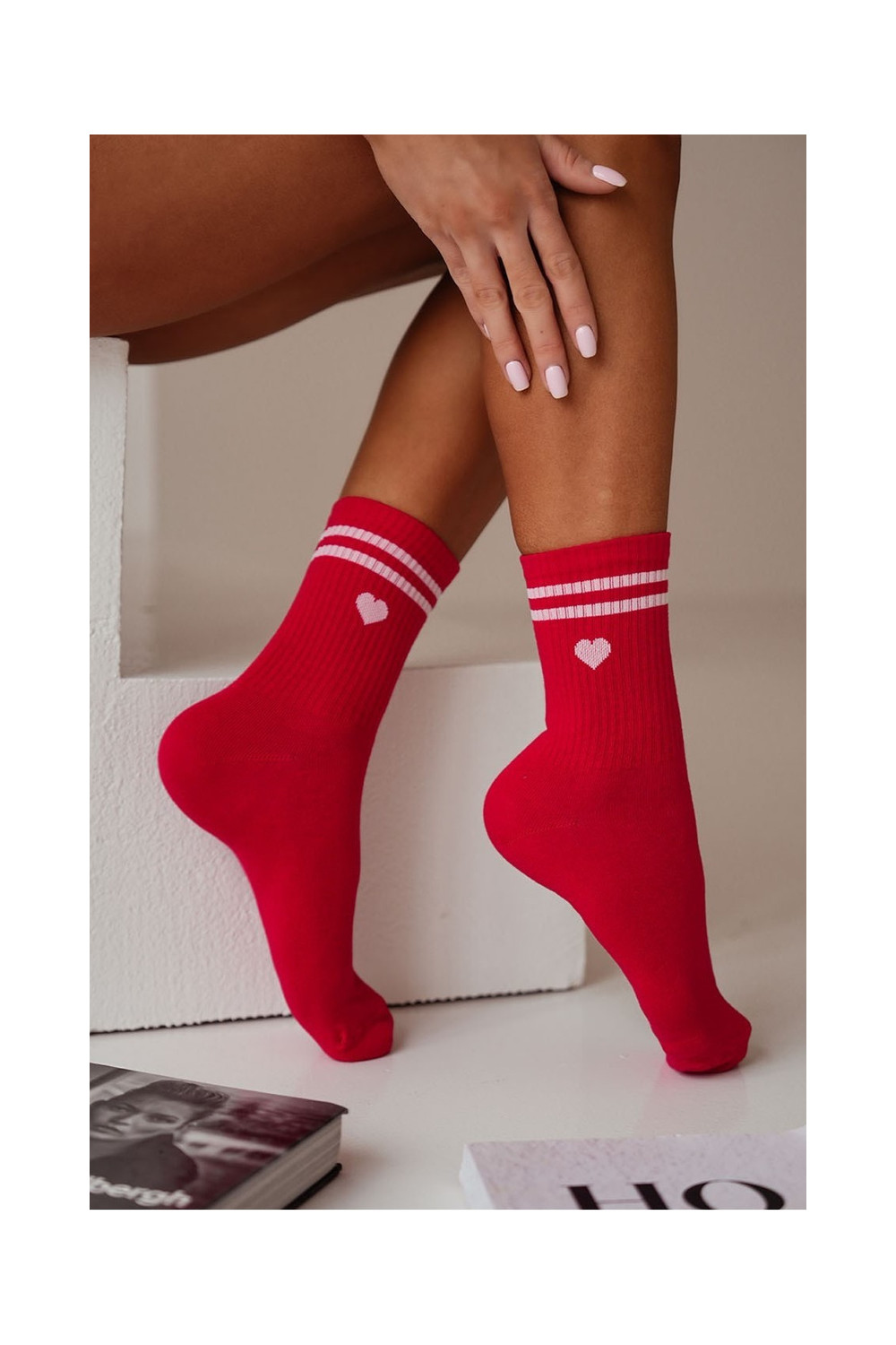 Zeķes Bawełniane Hearts Ar svītrām sarkanas krāsas