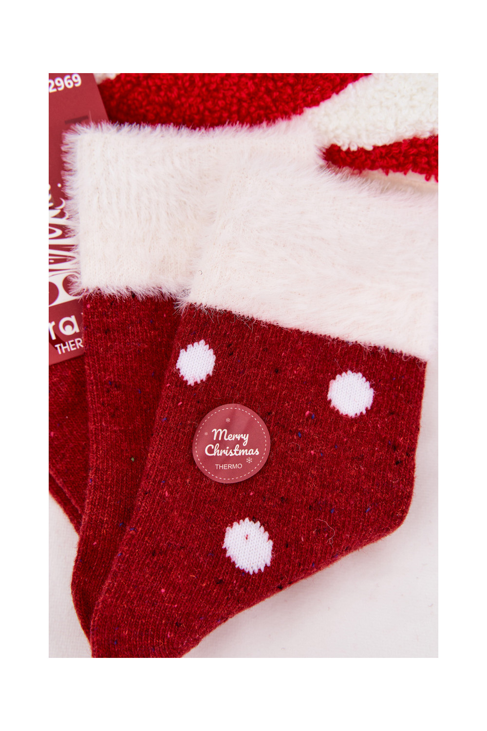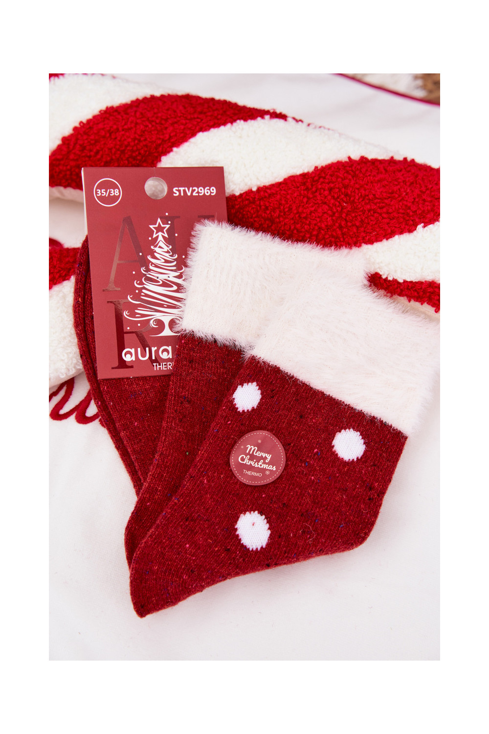 Zeķes  Christmas ar kažokādu I Kropkami Wełna  sarkanas krāsas