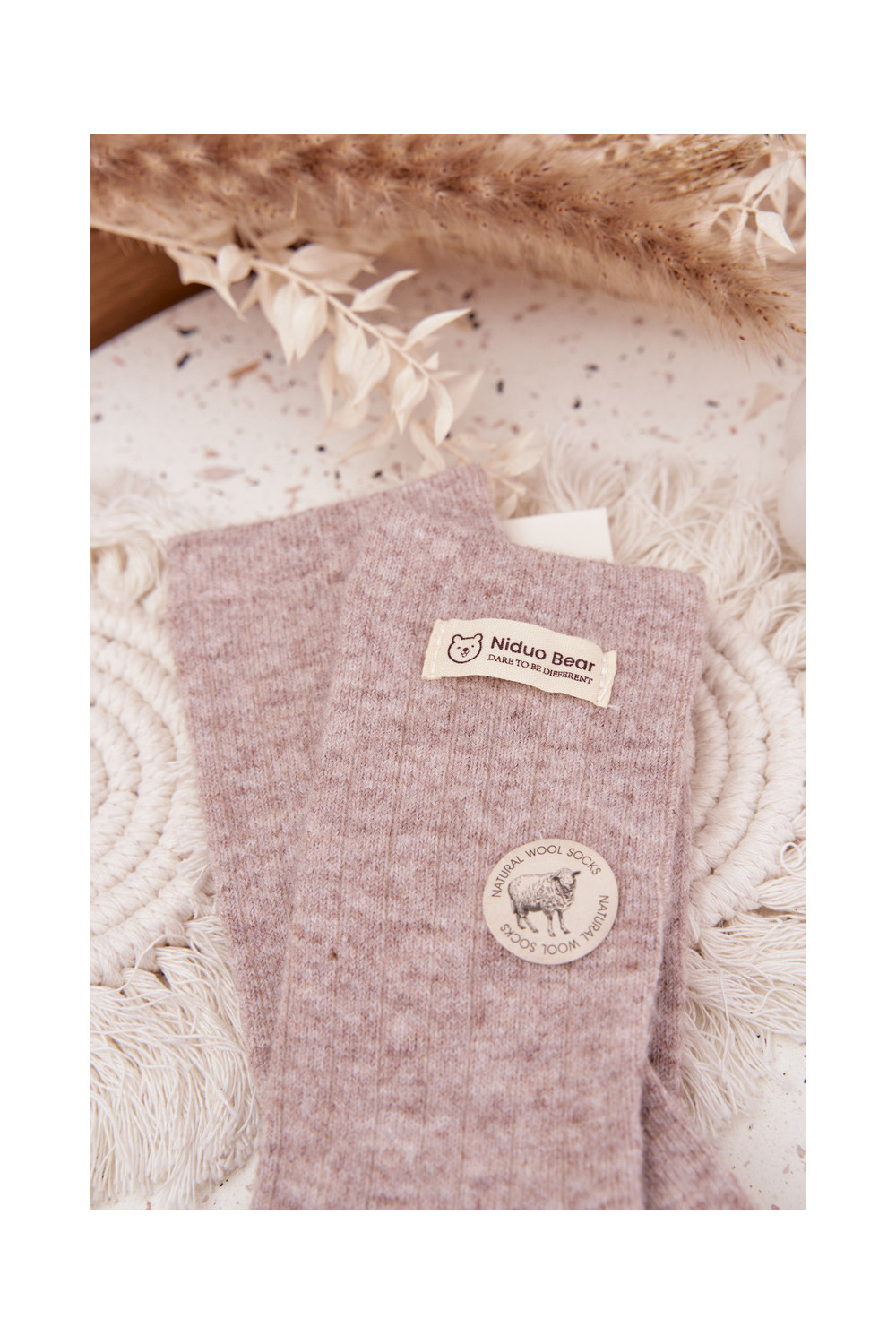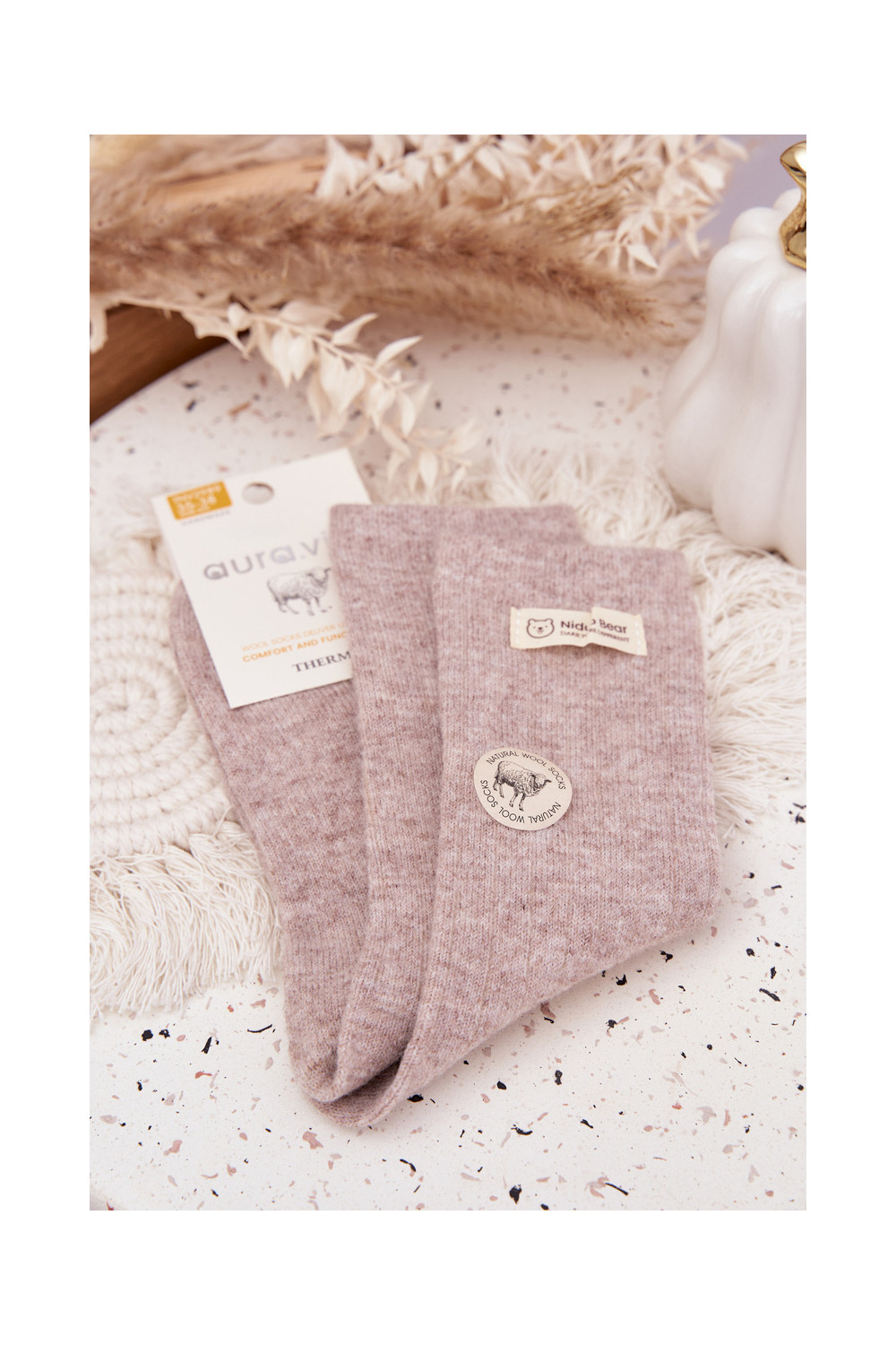 silti Wełniane Zeķes  Z Naszywką smilšu krāsas