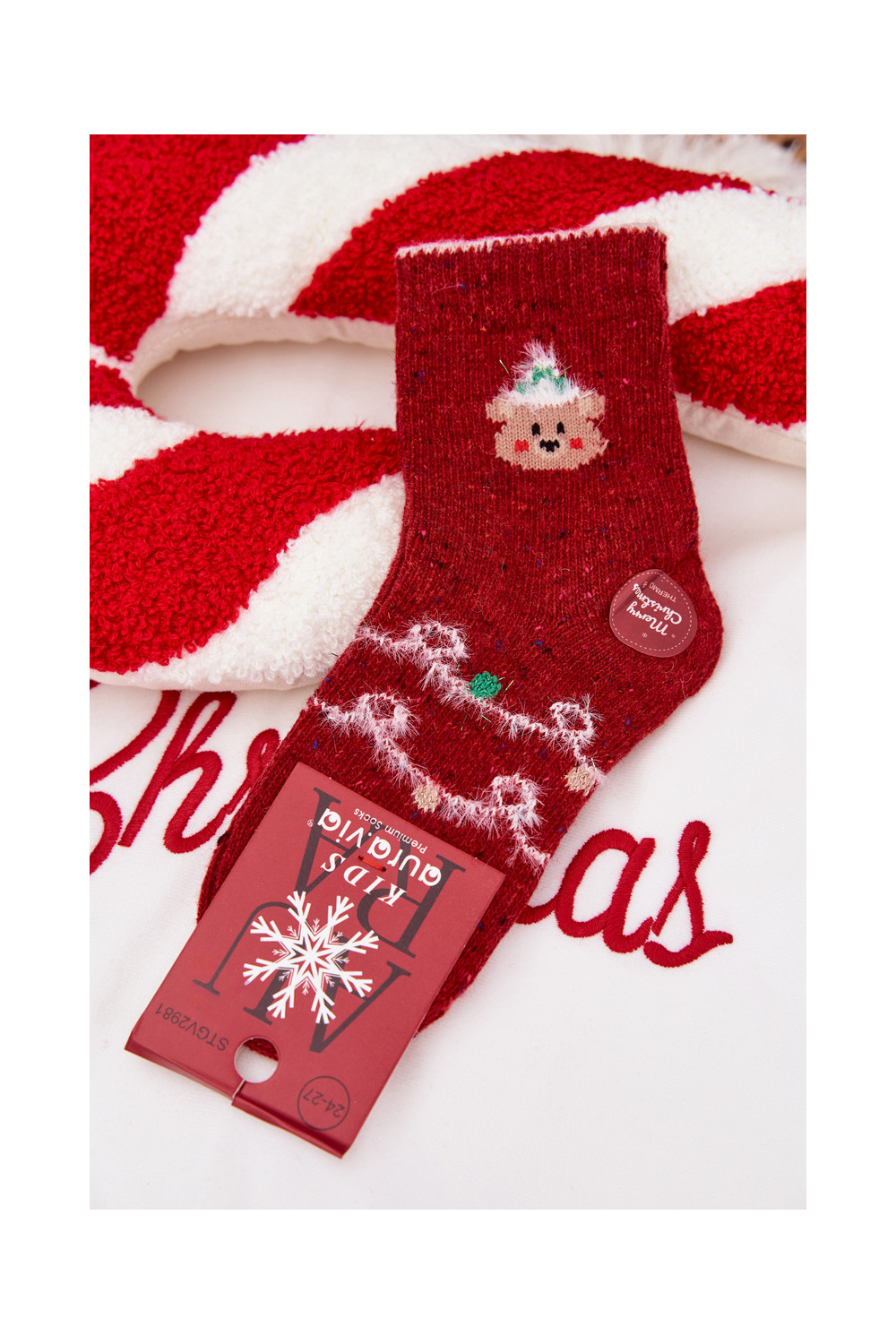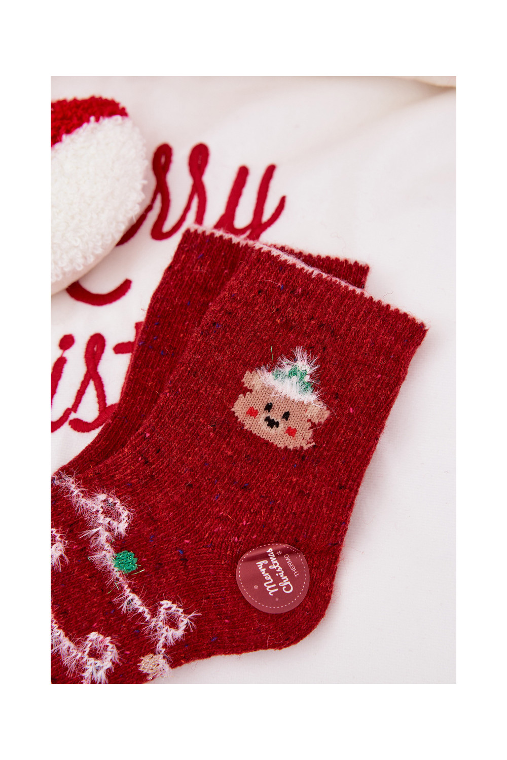 Bērnu apavi Christmas Zeķes Ar Lāci INełna Alpaka sarkanas krāsas
