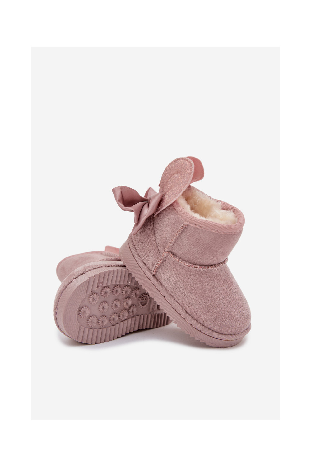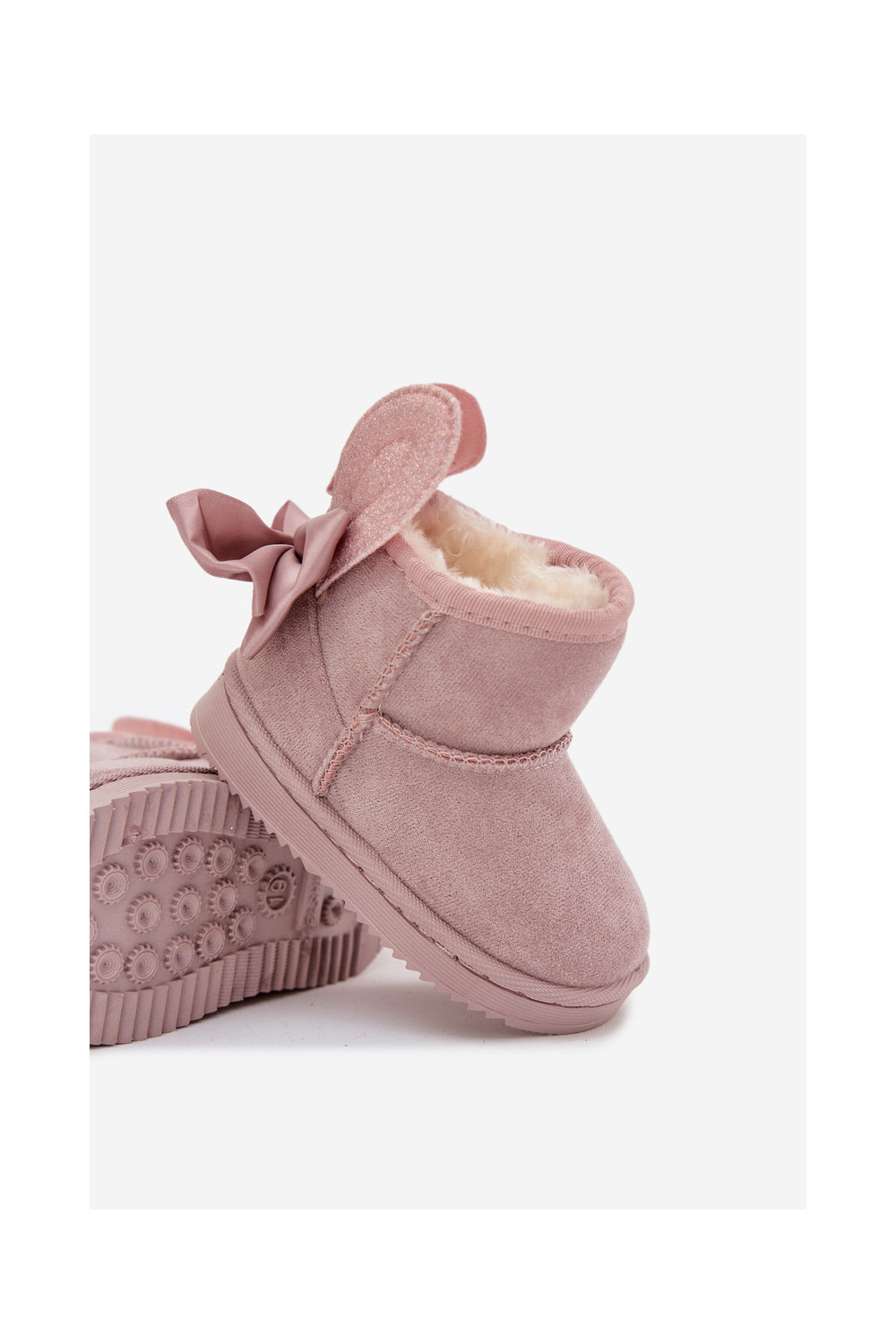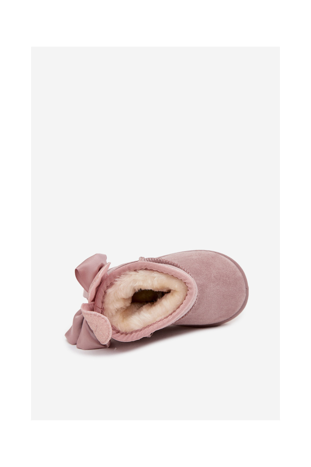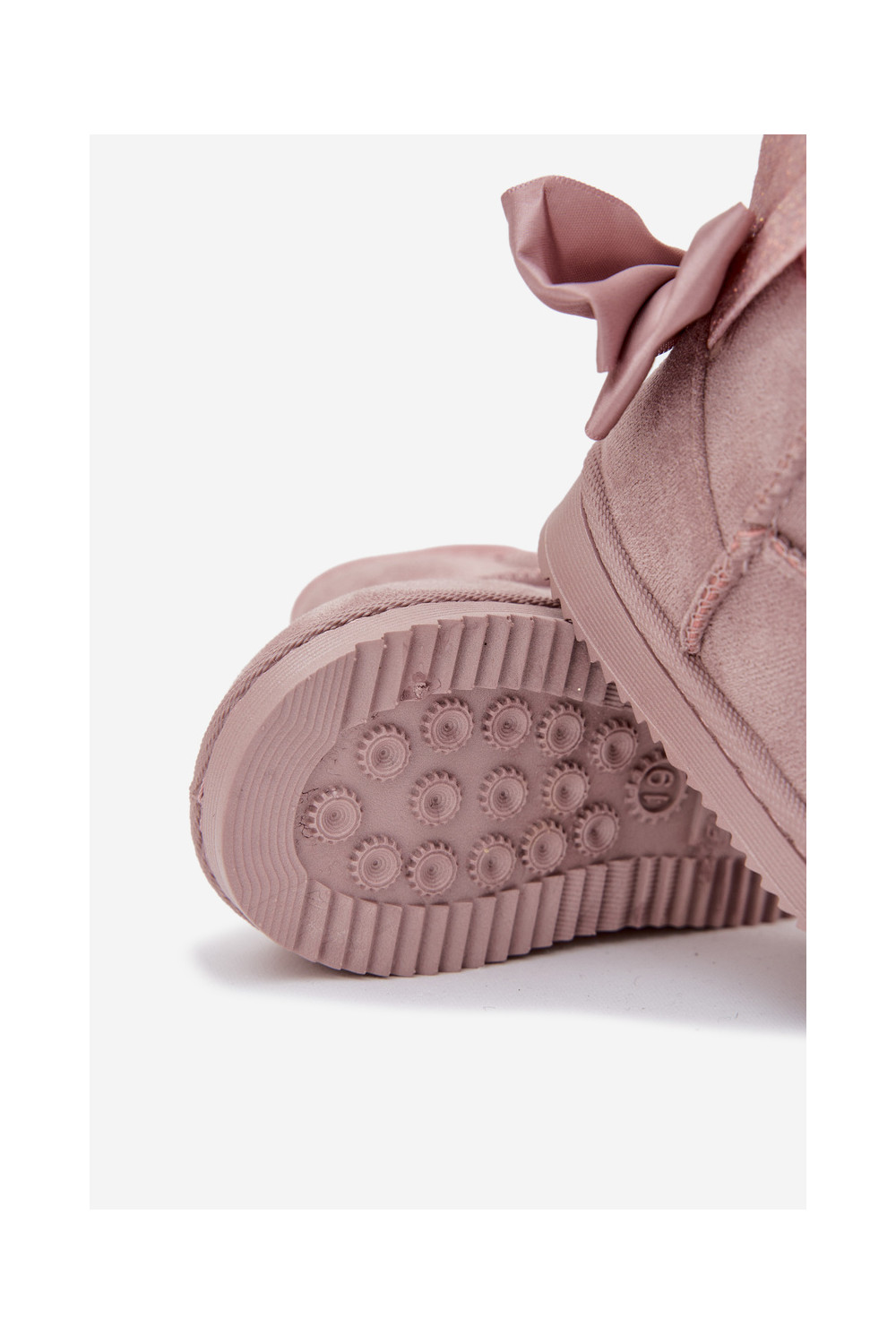 Bērnu siltie sniega zābaki „Meriva" ar lentītēm, rozā krāsā