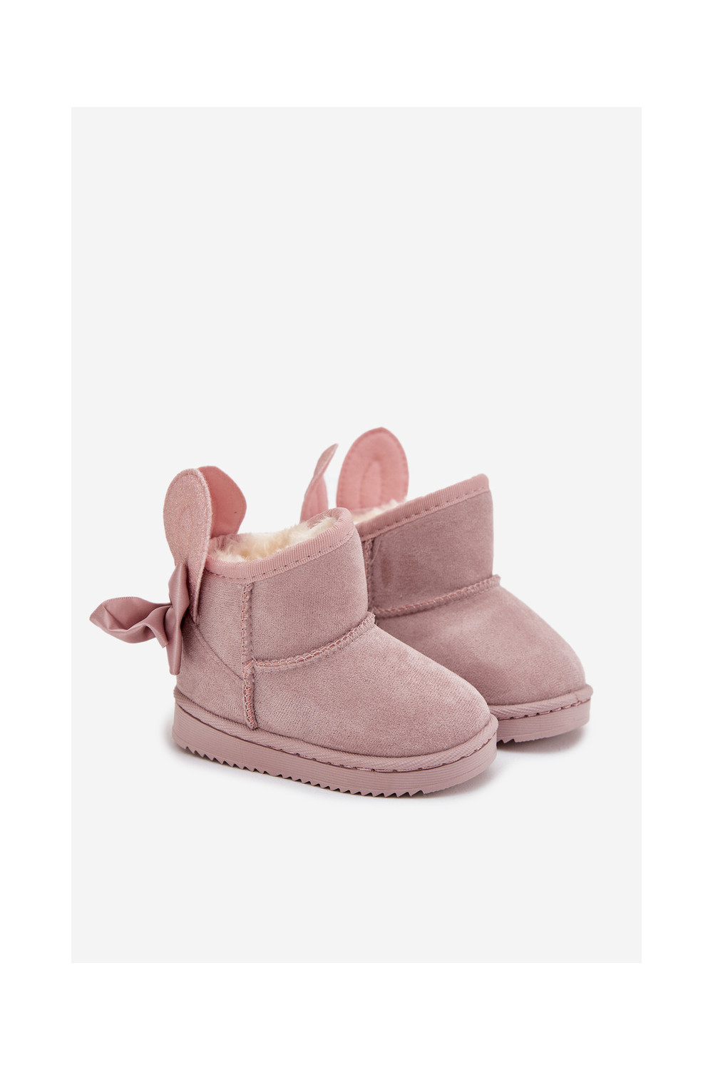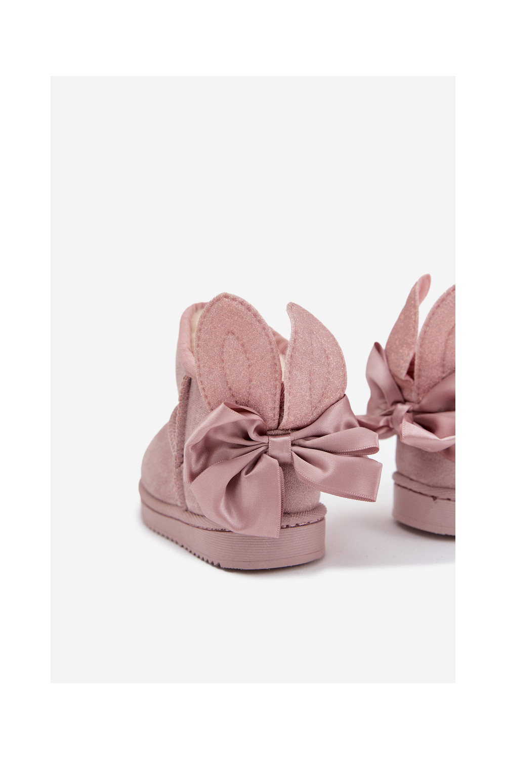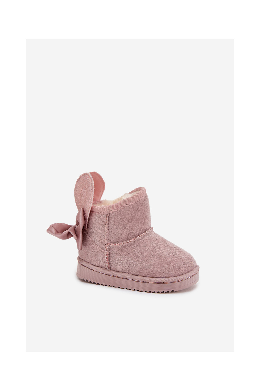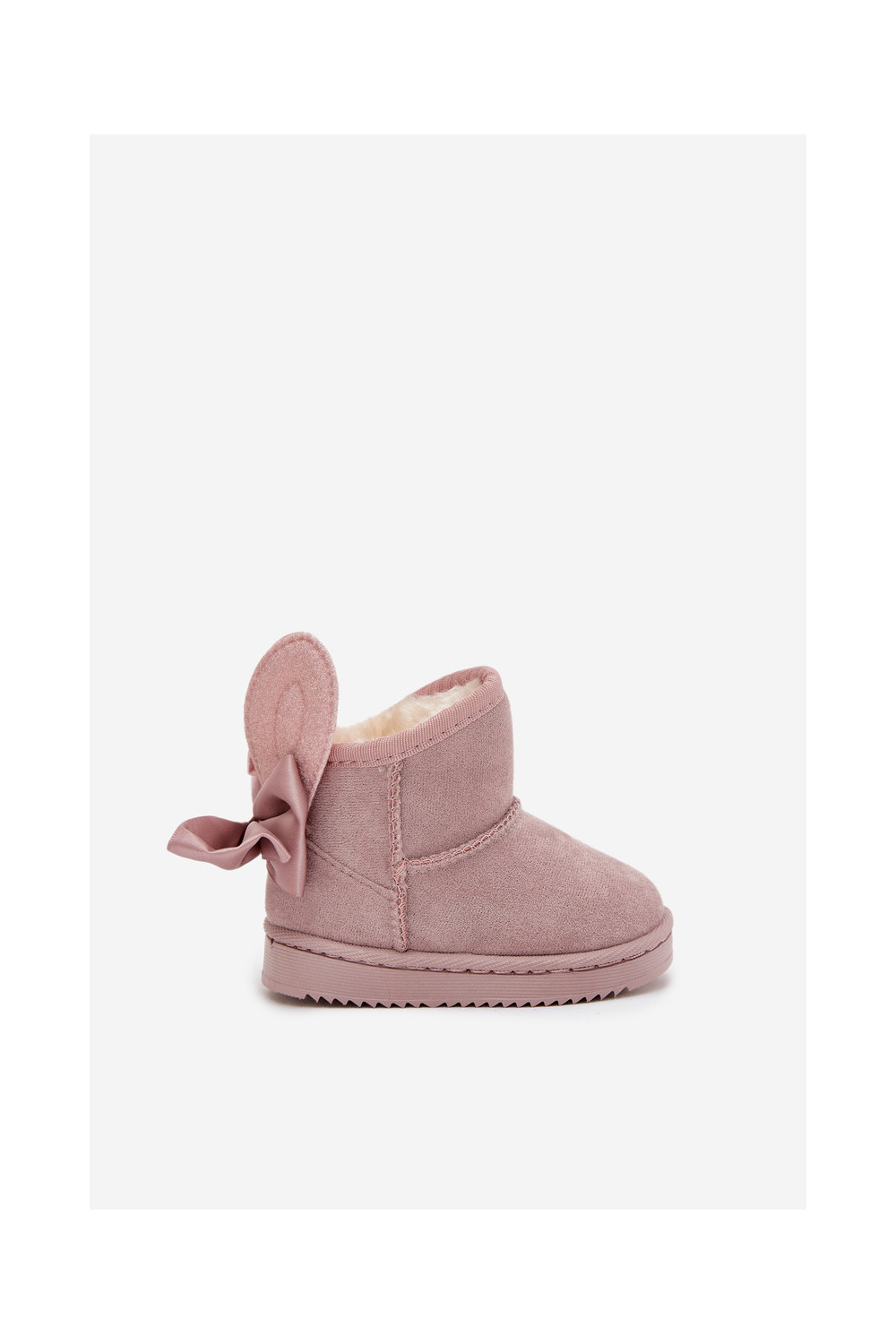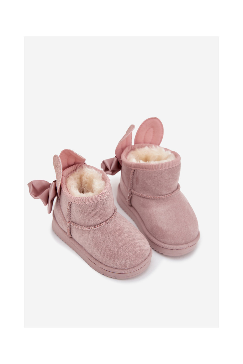 Bērnu siltie sniega zābaki „Meriva" ar lentītēm, rozā krāsā