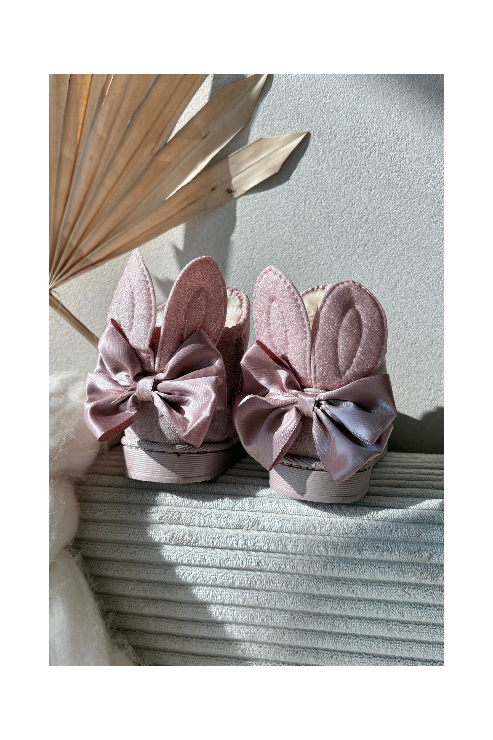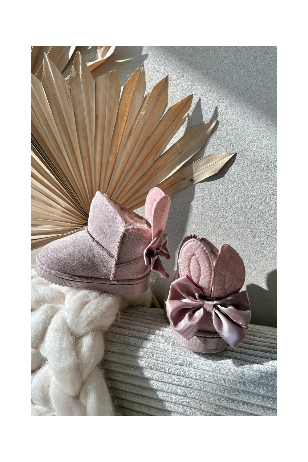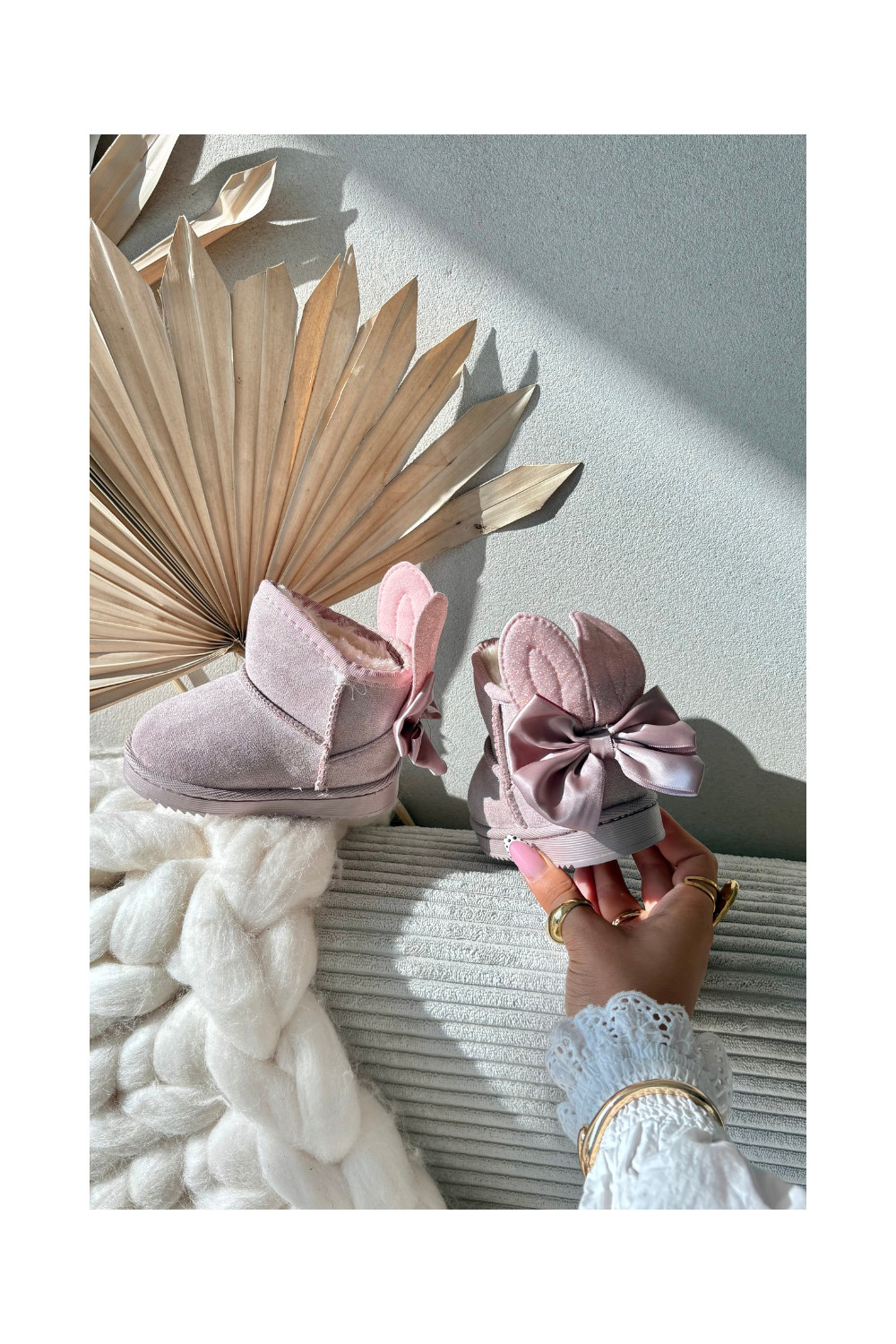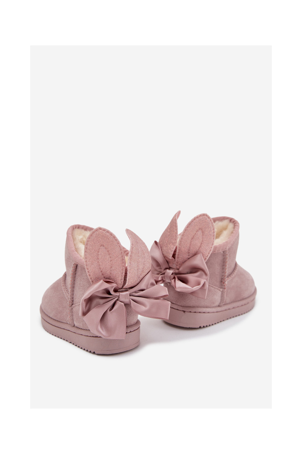 Bērnu siltie sniega zābaki „Meriva" ar lentītēm, rozā krāsā