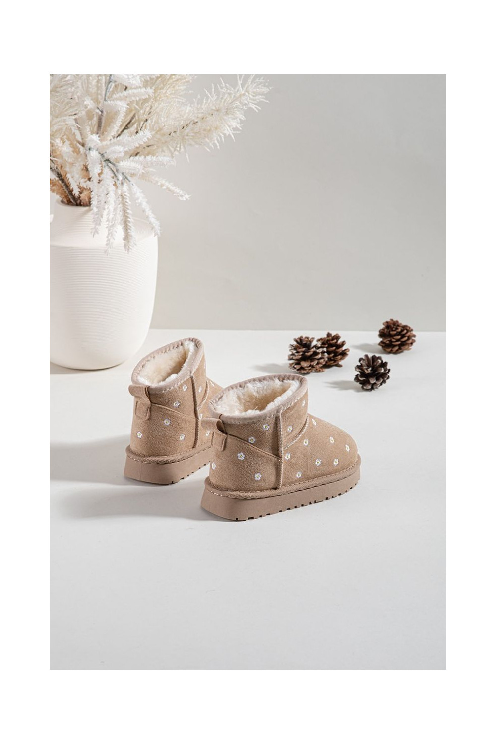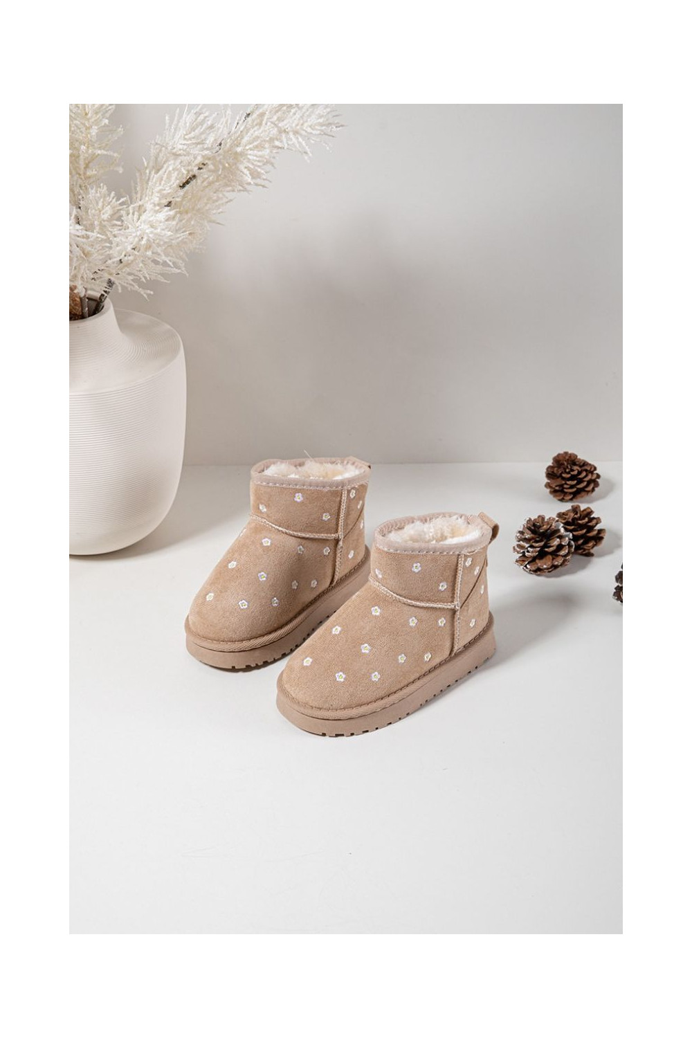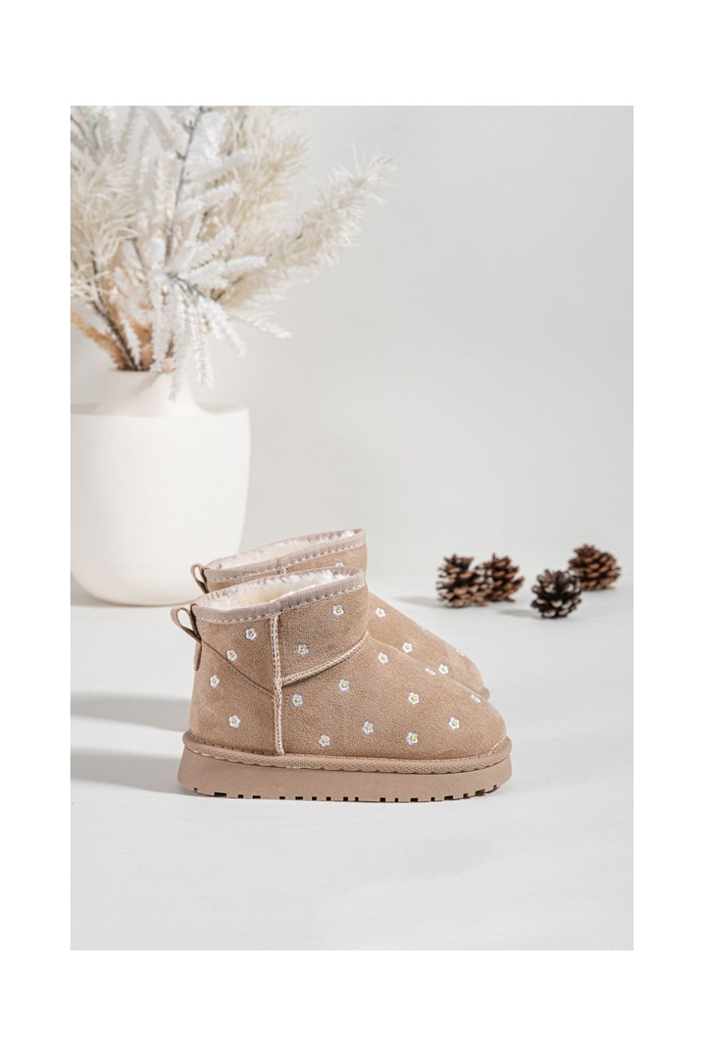 Bērnu sniega zābaki ar puķu motīviem Gracina smilšu krāsā