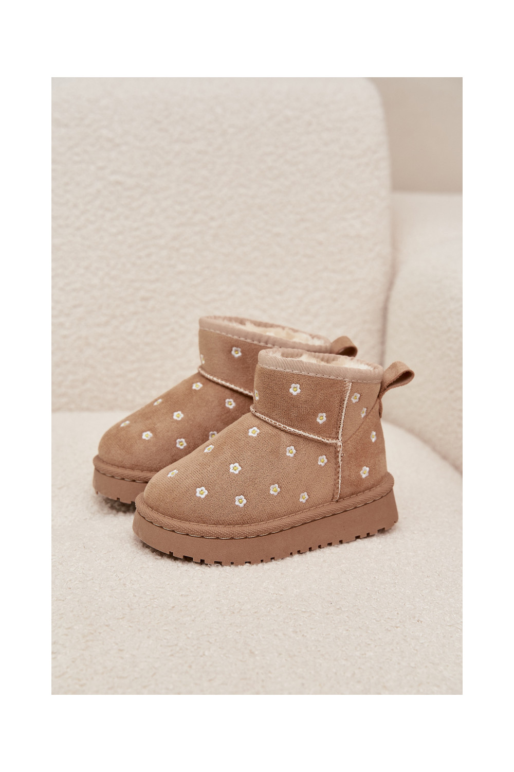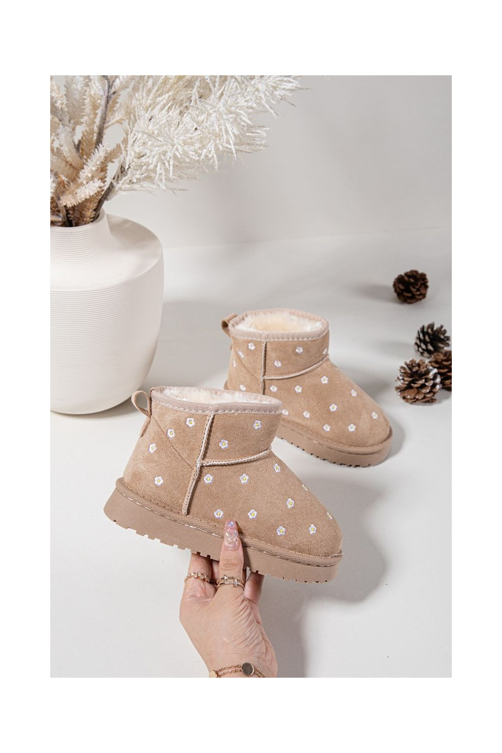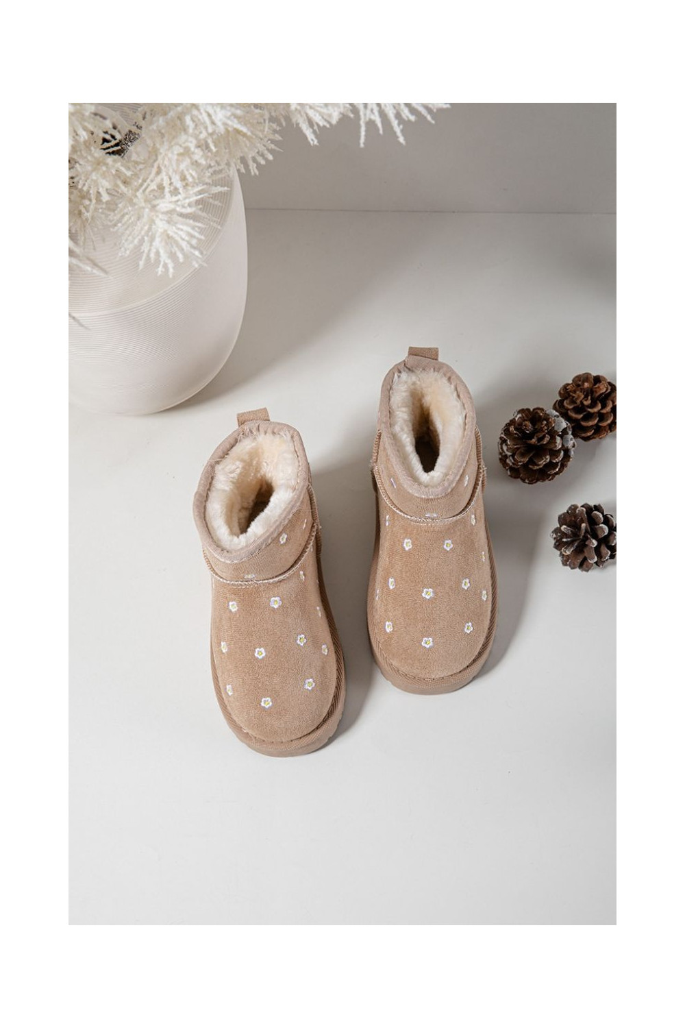 Bērnu sniega zābaki ar puķu motīviem Gracina smilšu krāsā