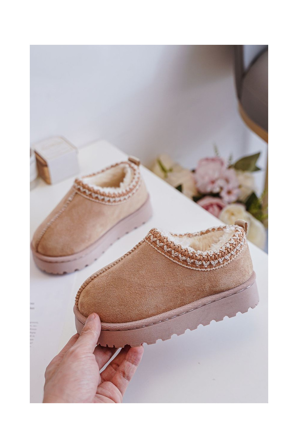 Bērnu sniega zābaki-zābaciņi ar platformu, siltināti ar kažokādu iekšpusē, smilšu krāsā Vilabria