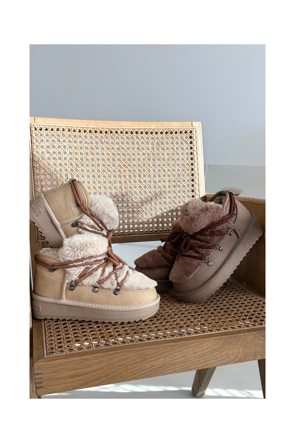 Smilšu krāsas bērnu jauniešu sniega zābaki ar kažokādu D.Franklin DFSH370011