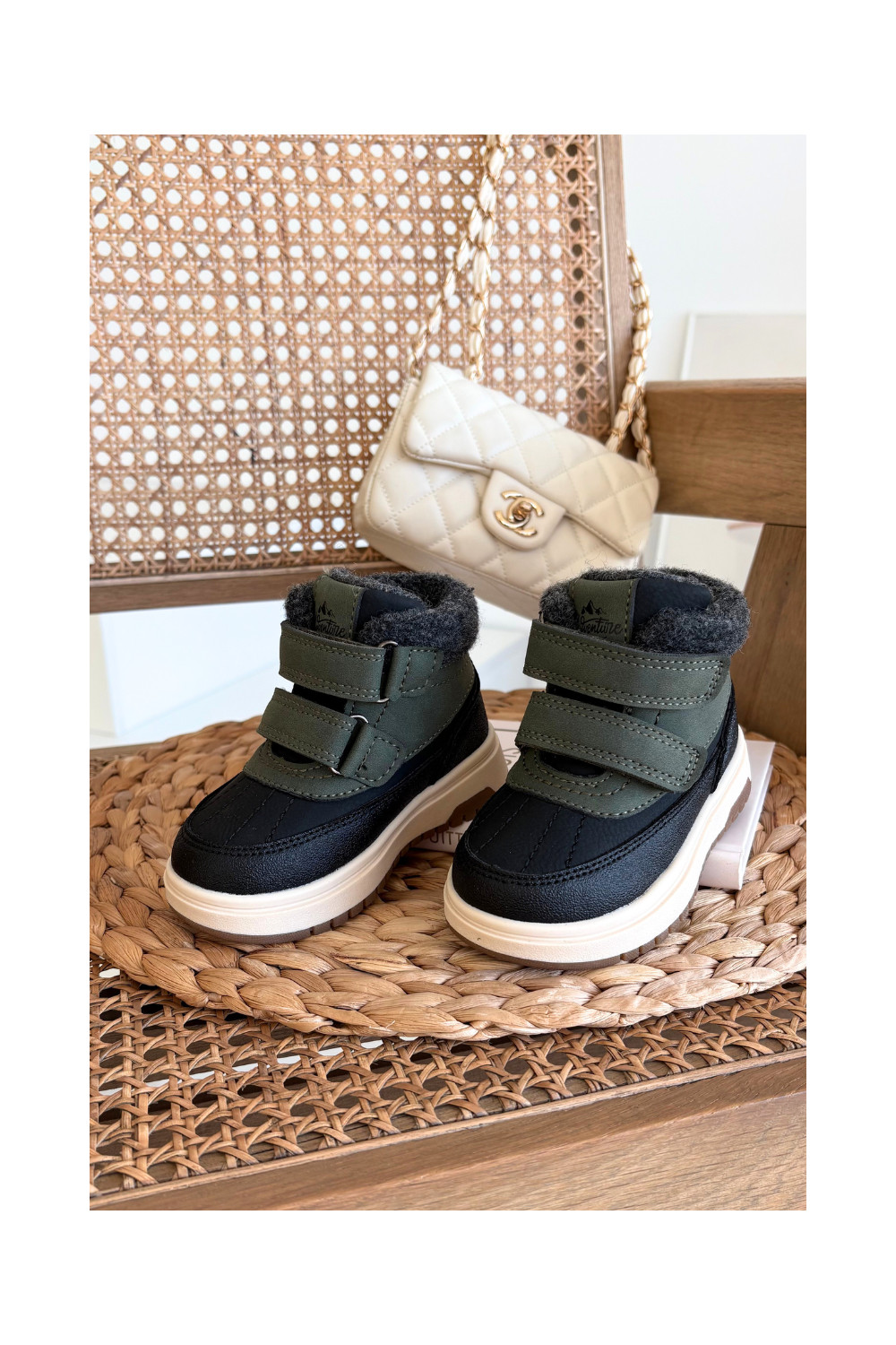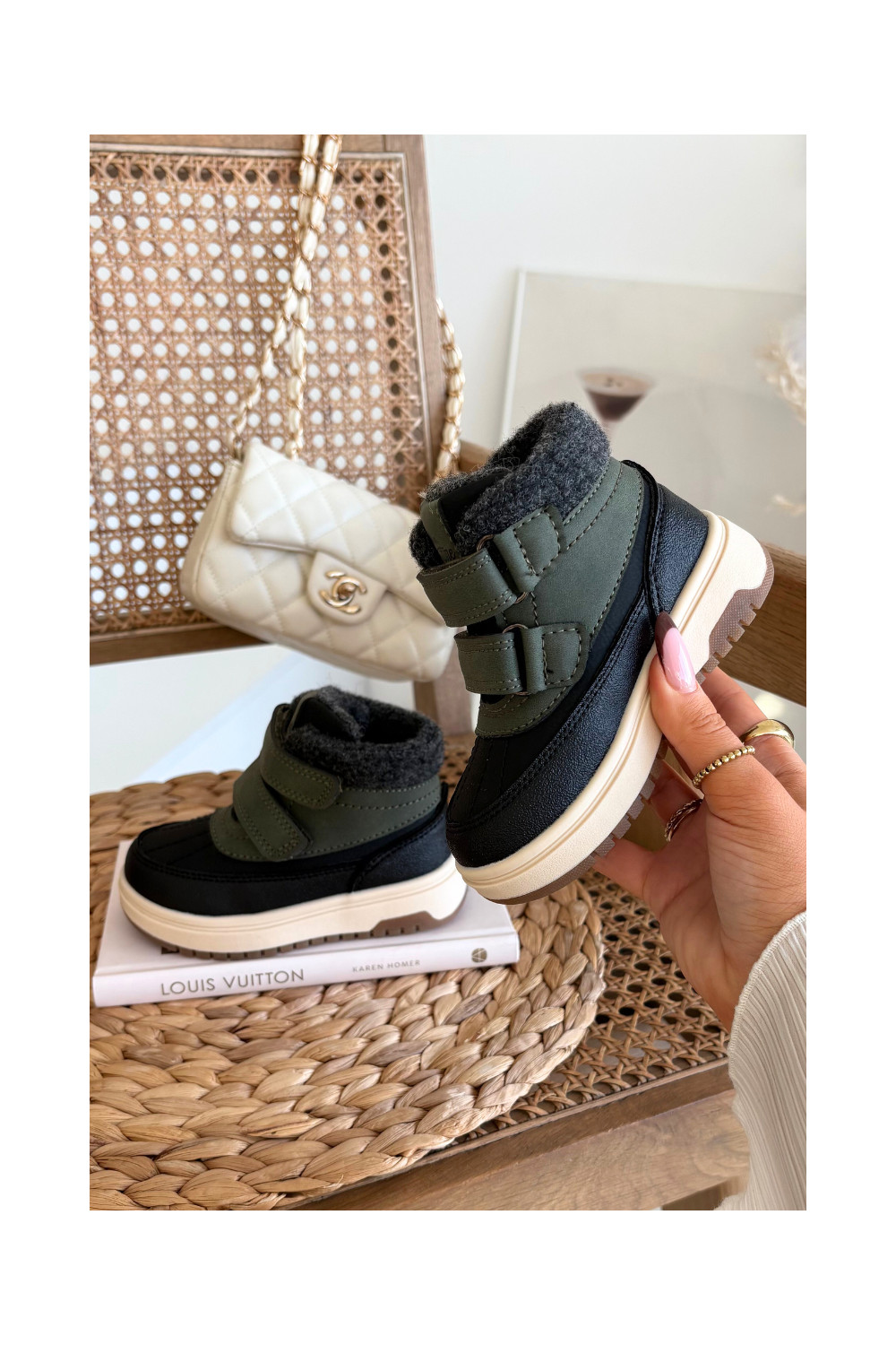 Bērnu sniega zābaki zaļā-melnā krāsā ar lipīgu aizdari Darlene