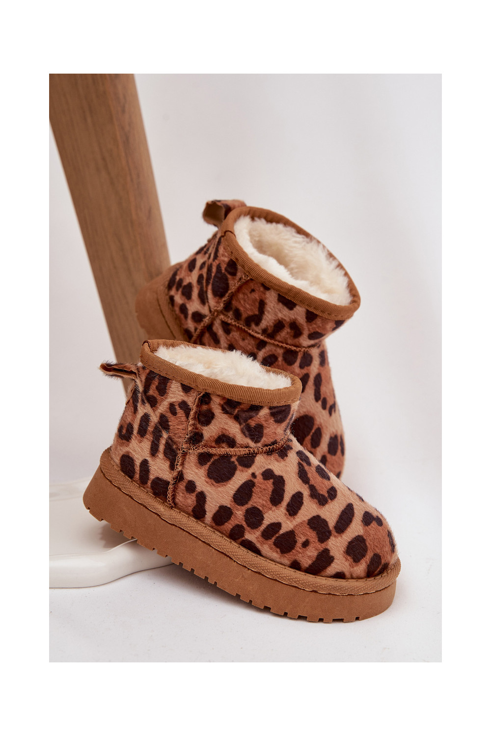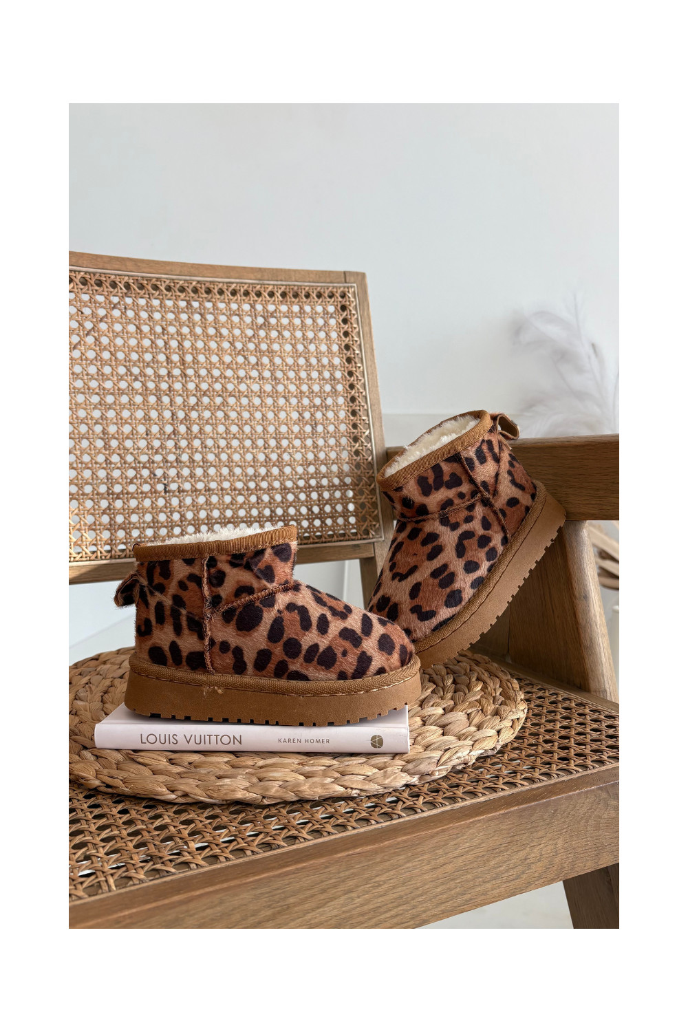 Rudu krāsu silti bērnu/salonu sniega zābaki ar mīksto oderi un leoparda rakstu Mireya