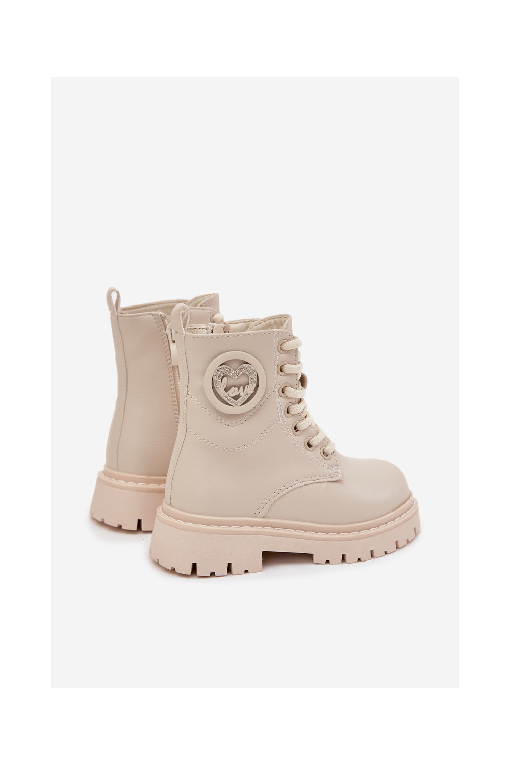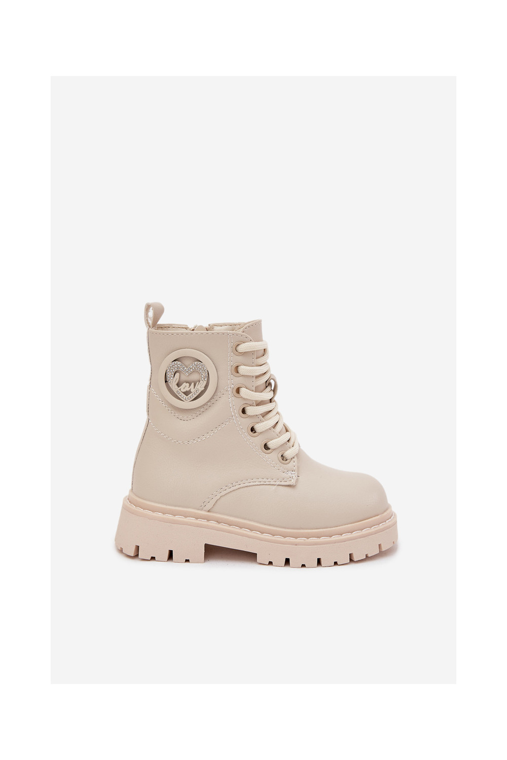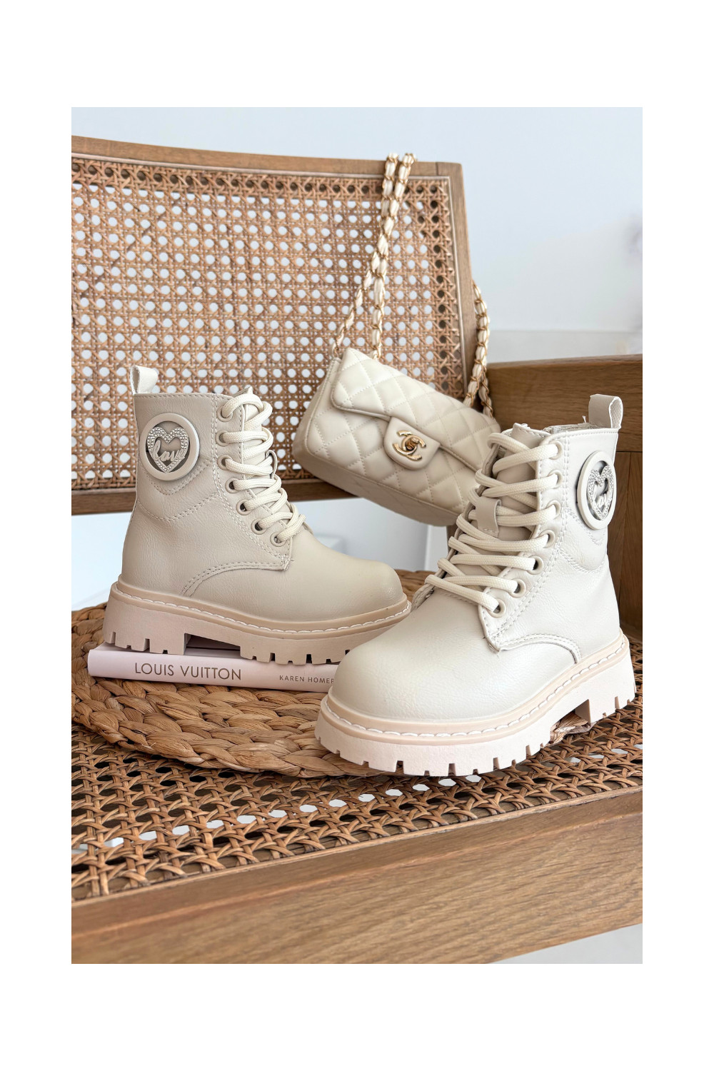 Bērnu siltināti zābaciņi ar vilnu iekšpusē un LOVE ornamentiem, smilšu krāsā, Rosaira
