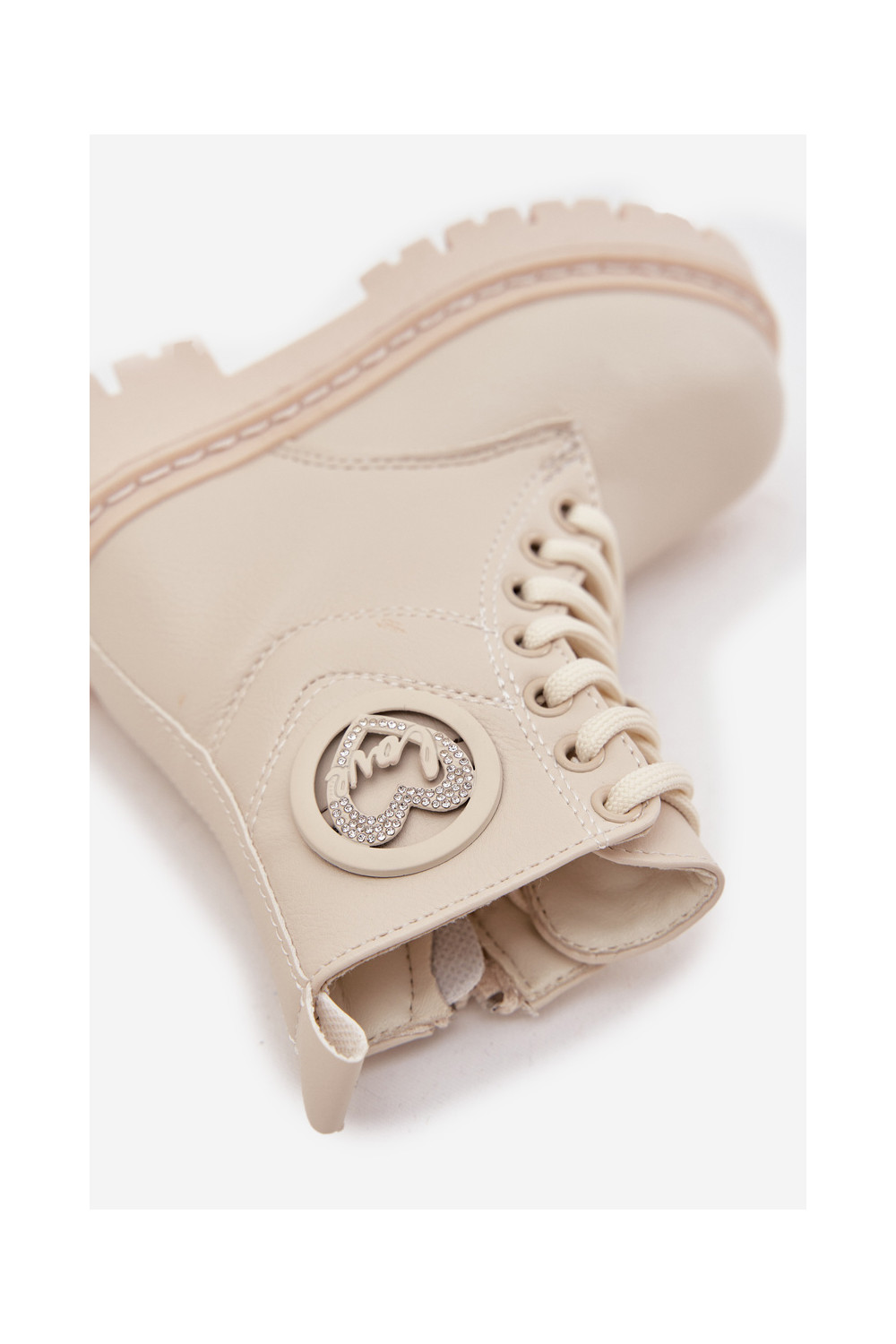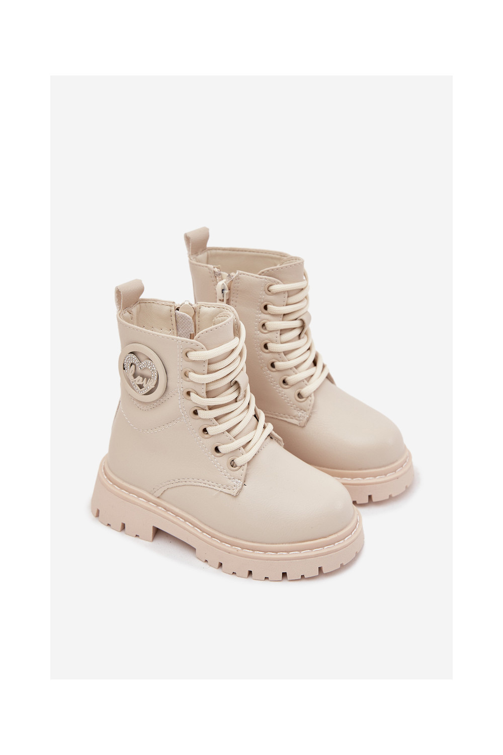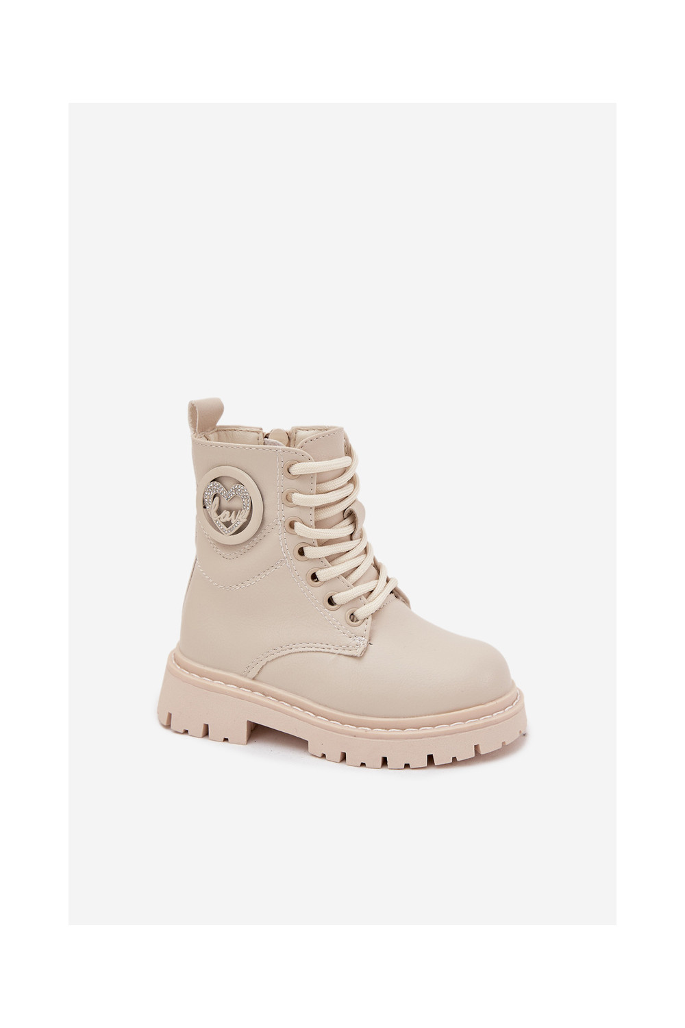 Bērnu siltināti zābaciņi ar vilnu iekšpusē un LOVE ornamentiem, smilšu krāsā, Rosaira