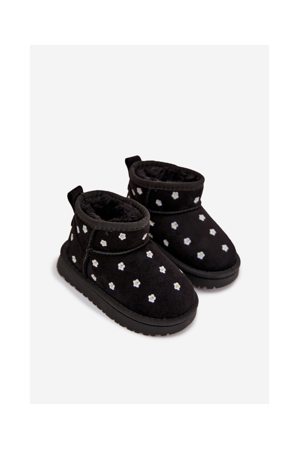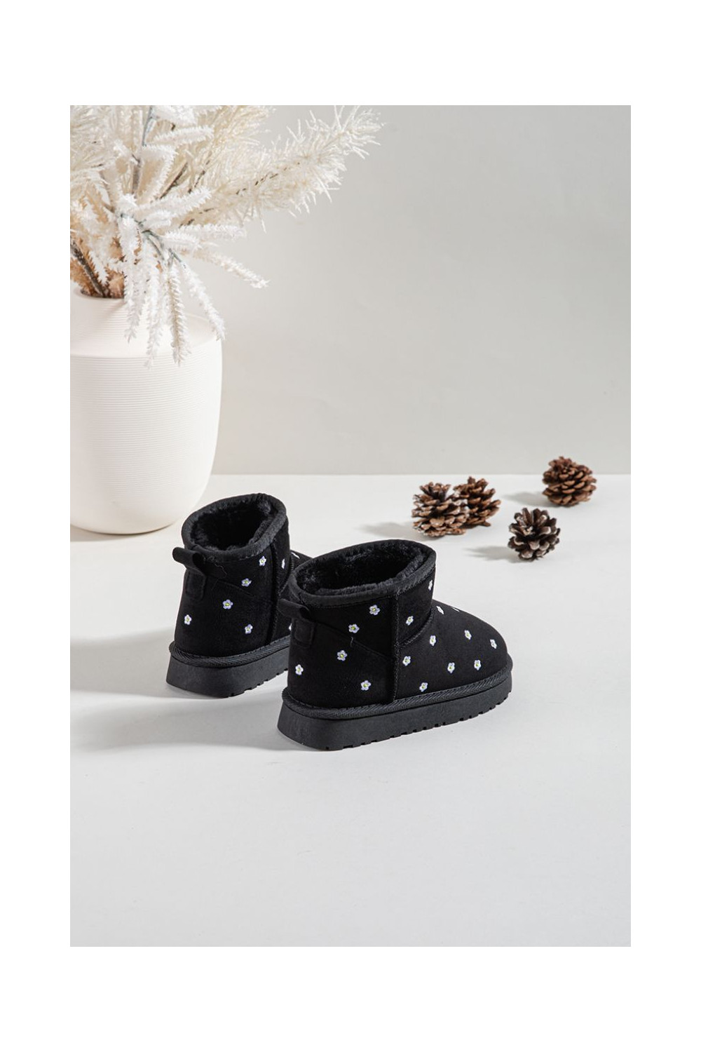 Bērnu sniega zābaki ar ziedu motīviem, melnā krāsā Gracina