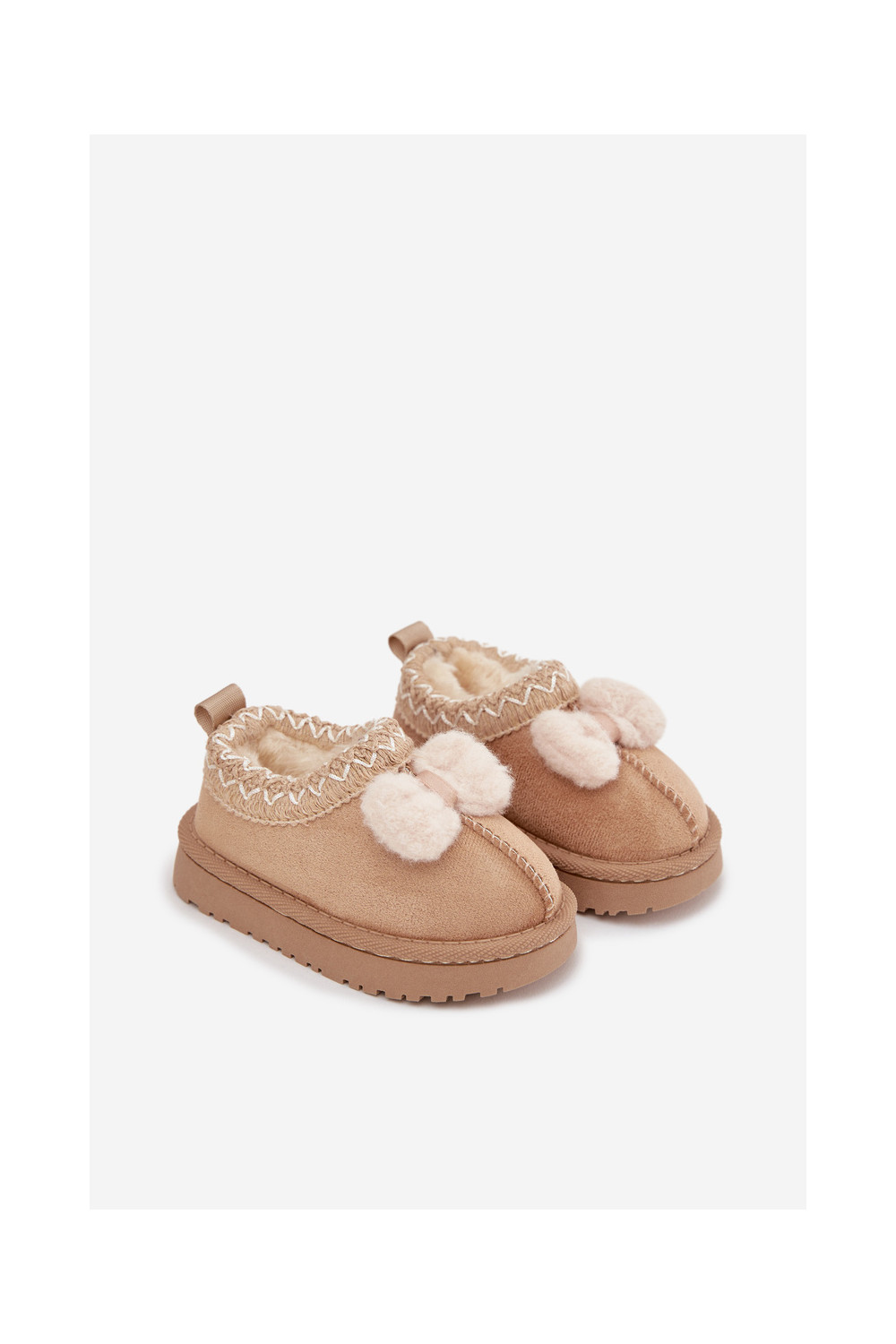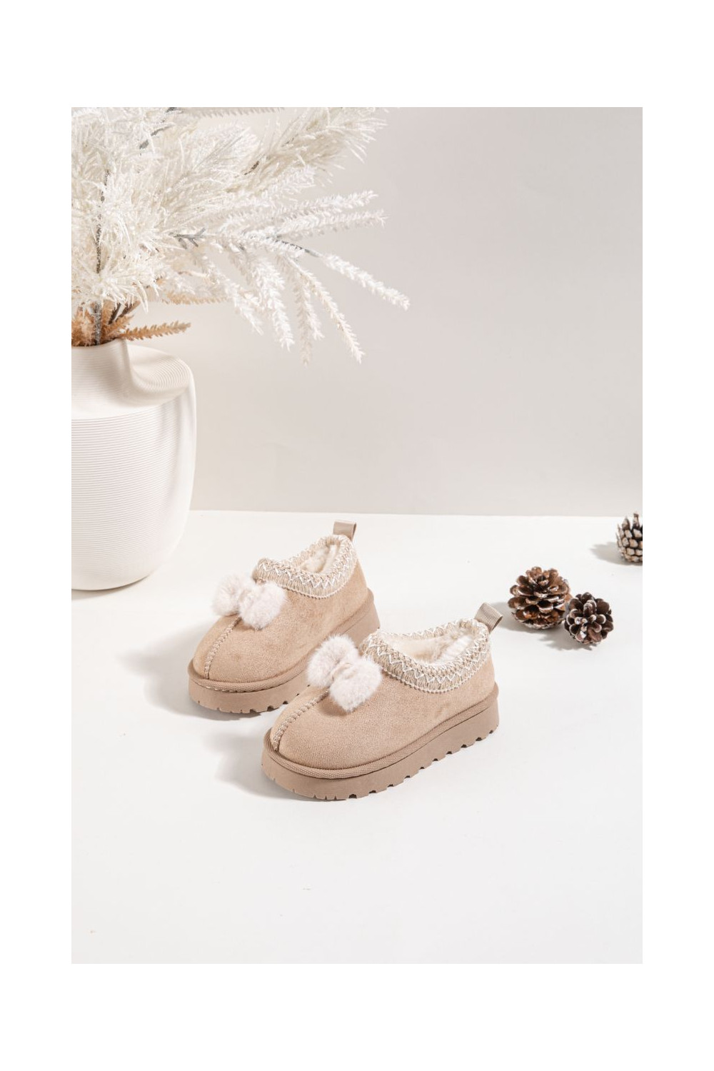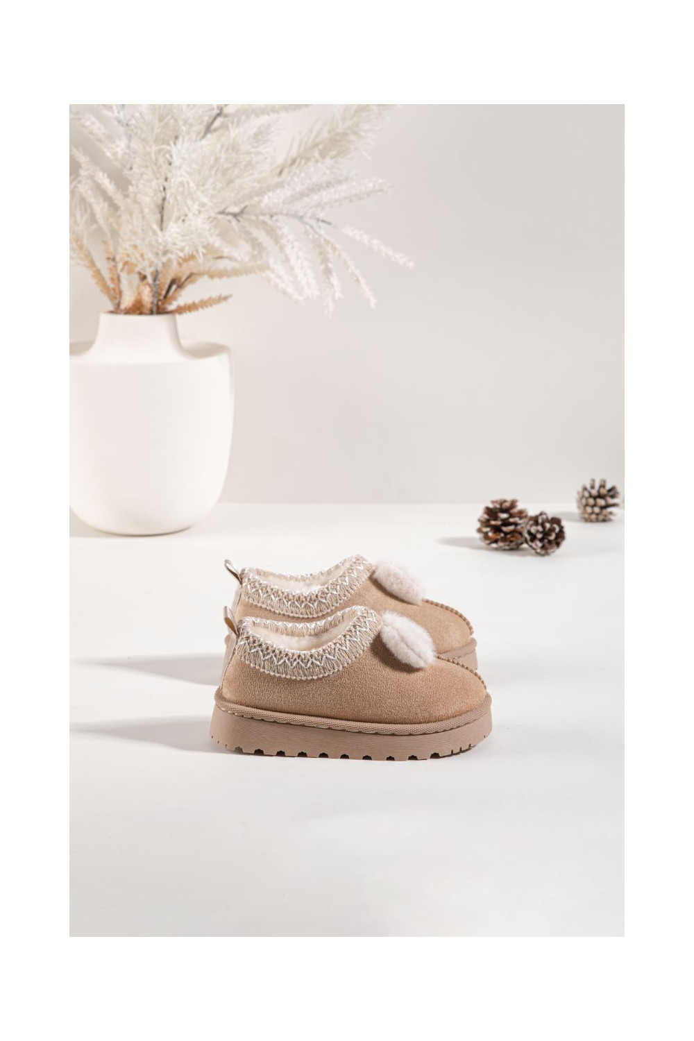 Bērnu sniega zābaki ar izšuvumiem un lentēm, smilšu krāsā Daven