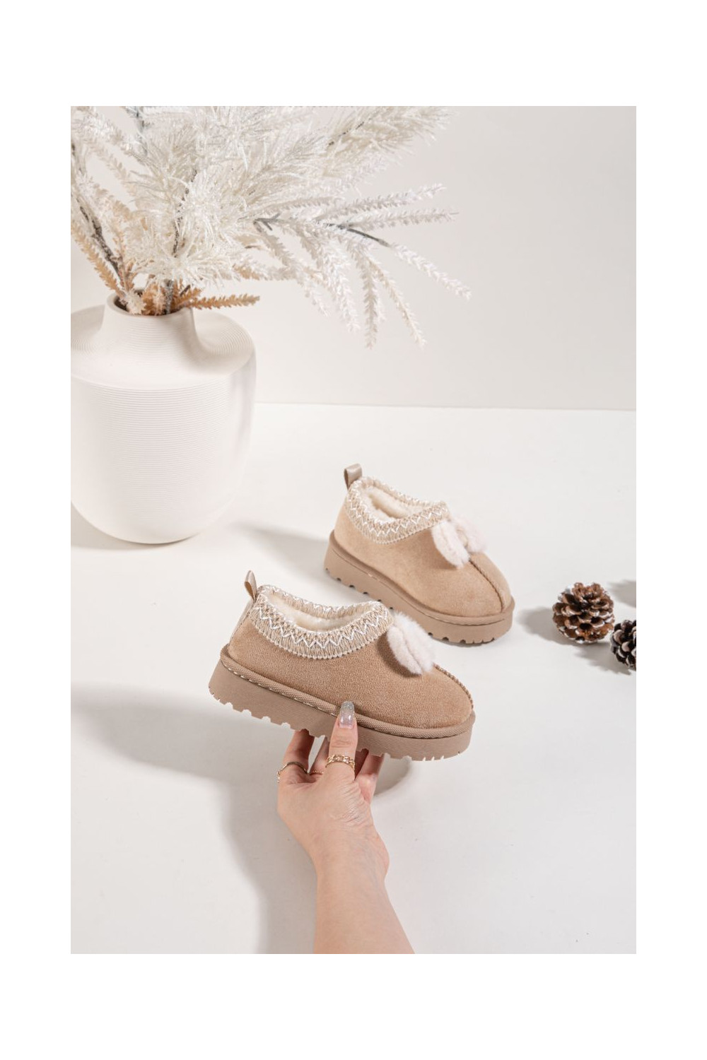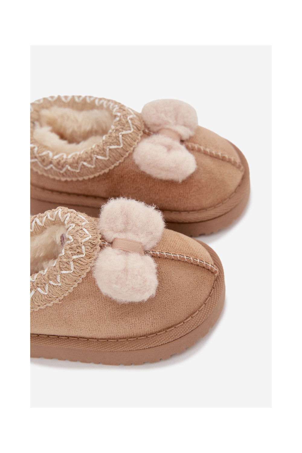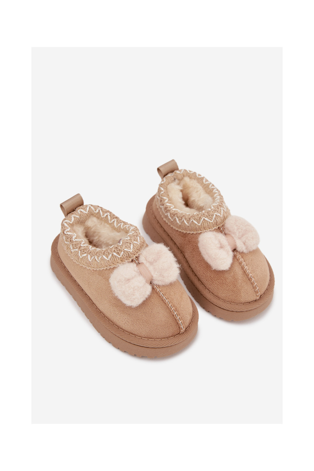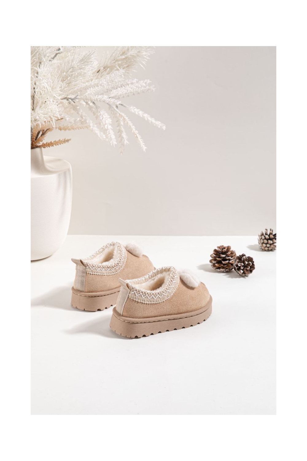 Bērnu sniega zābaki ar izšuvumiem un lentēm, smilšu krāsā Daven