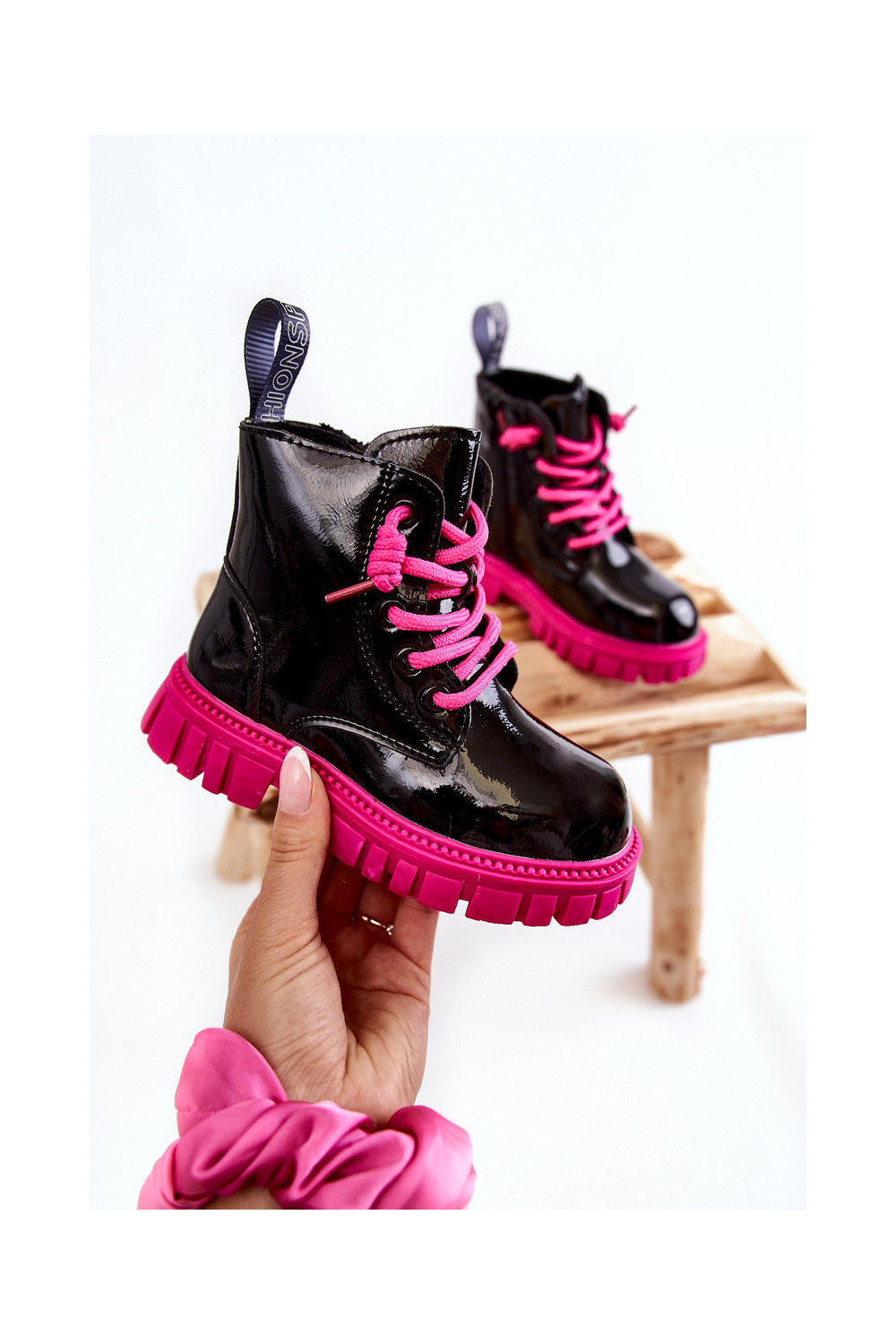 Laque siltināti Sieviešu puszābaki Melns-Rozā krāsas Heidi